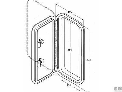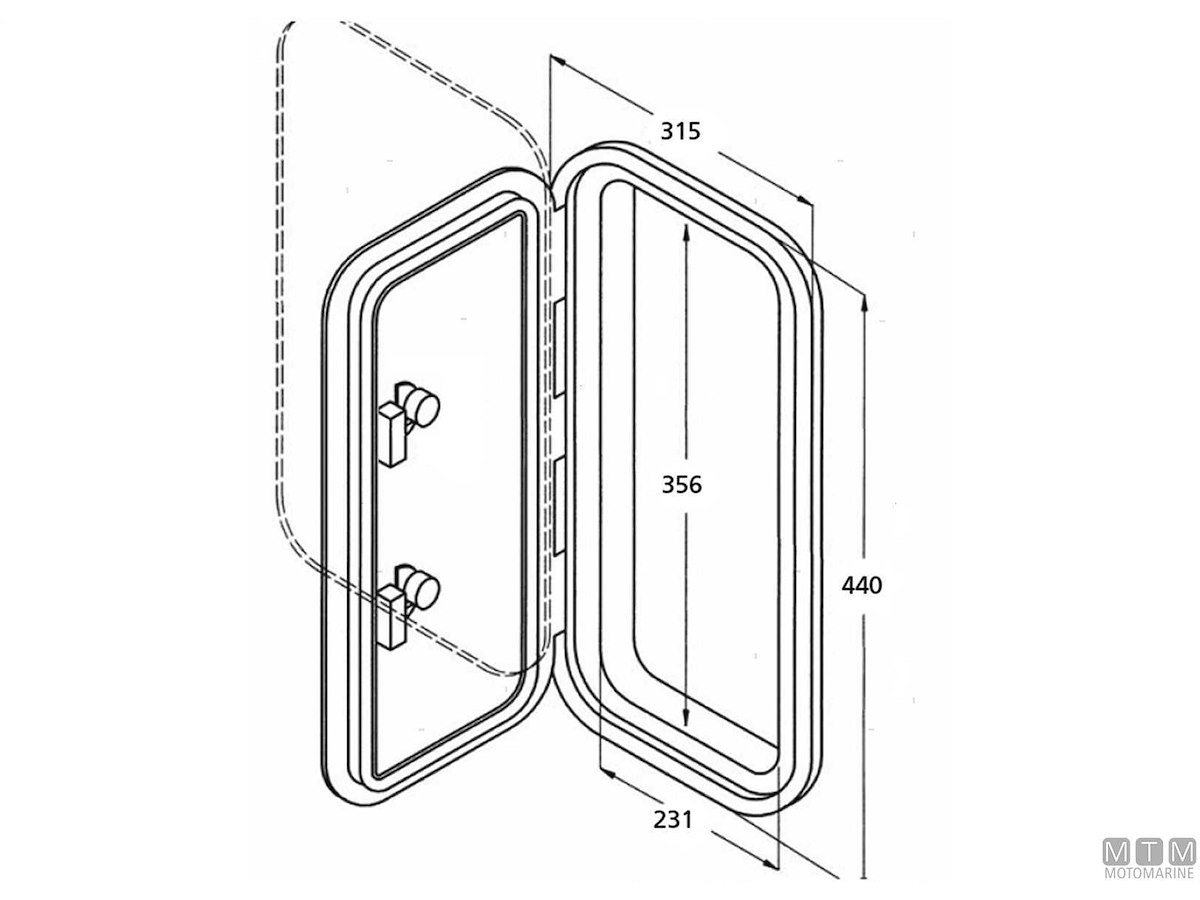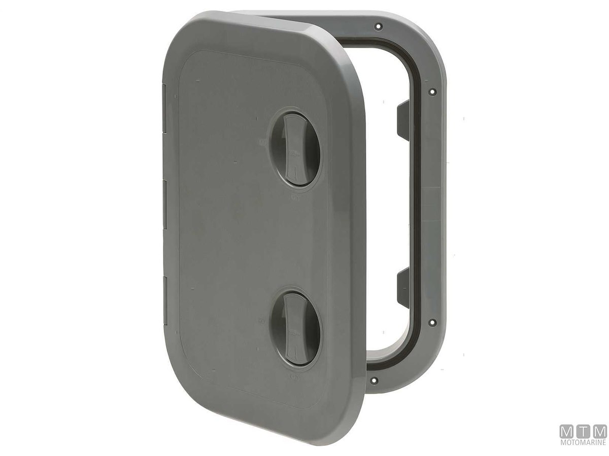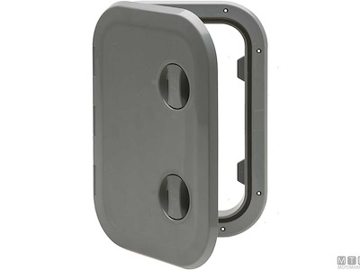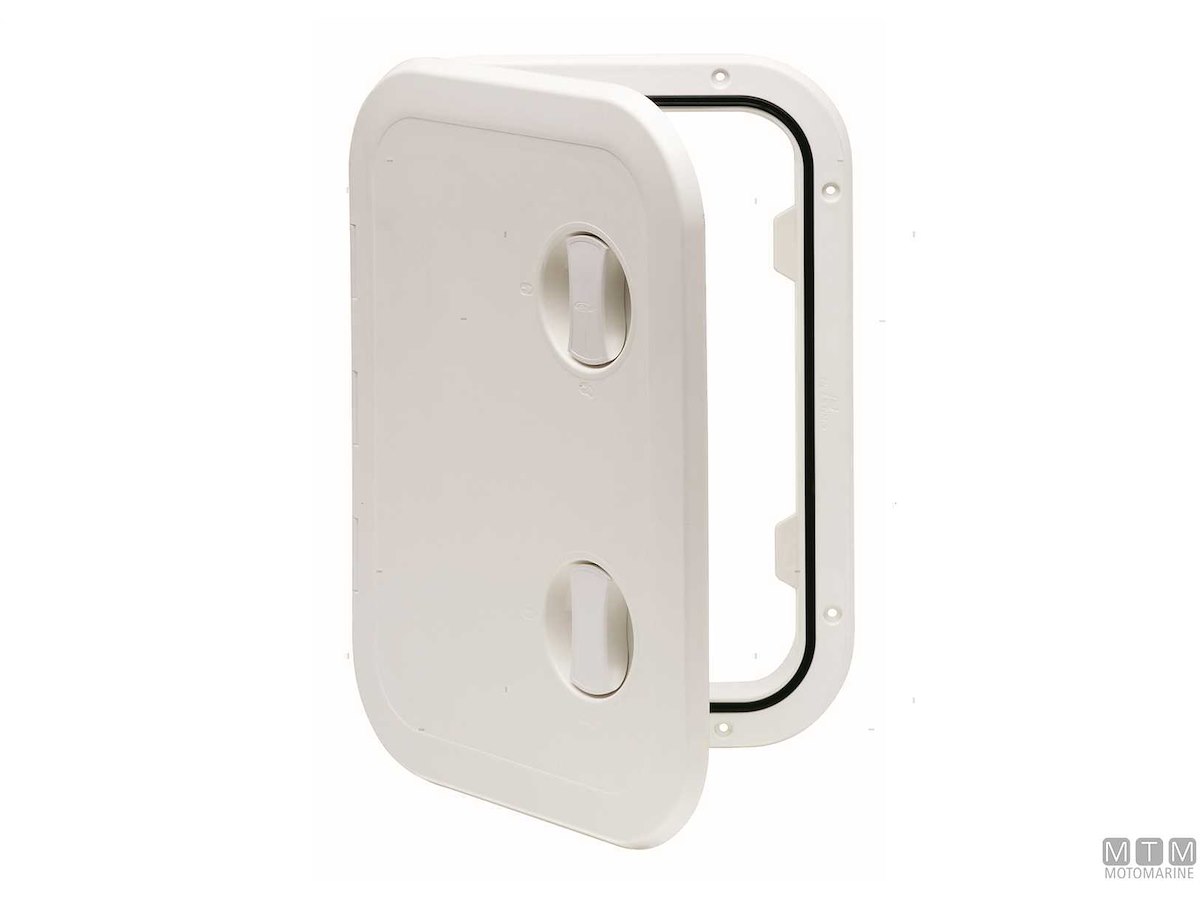 Portello di accesso calpestabile stagno apribile a 180° in ABS ASA resistente ai raggi UV.Sportello con doppio sistema di apertura: uno classico e uno sfilabile.Il sistema sfilabile consente di aprire lo sportello in spazi ristretti.Montaggio su ponte o a paratia.
