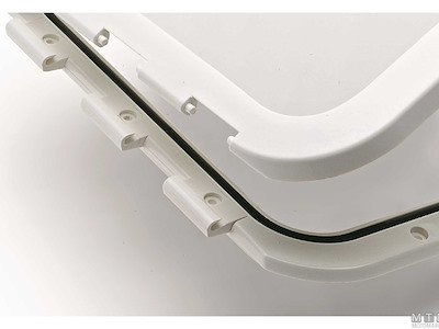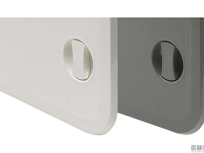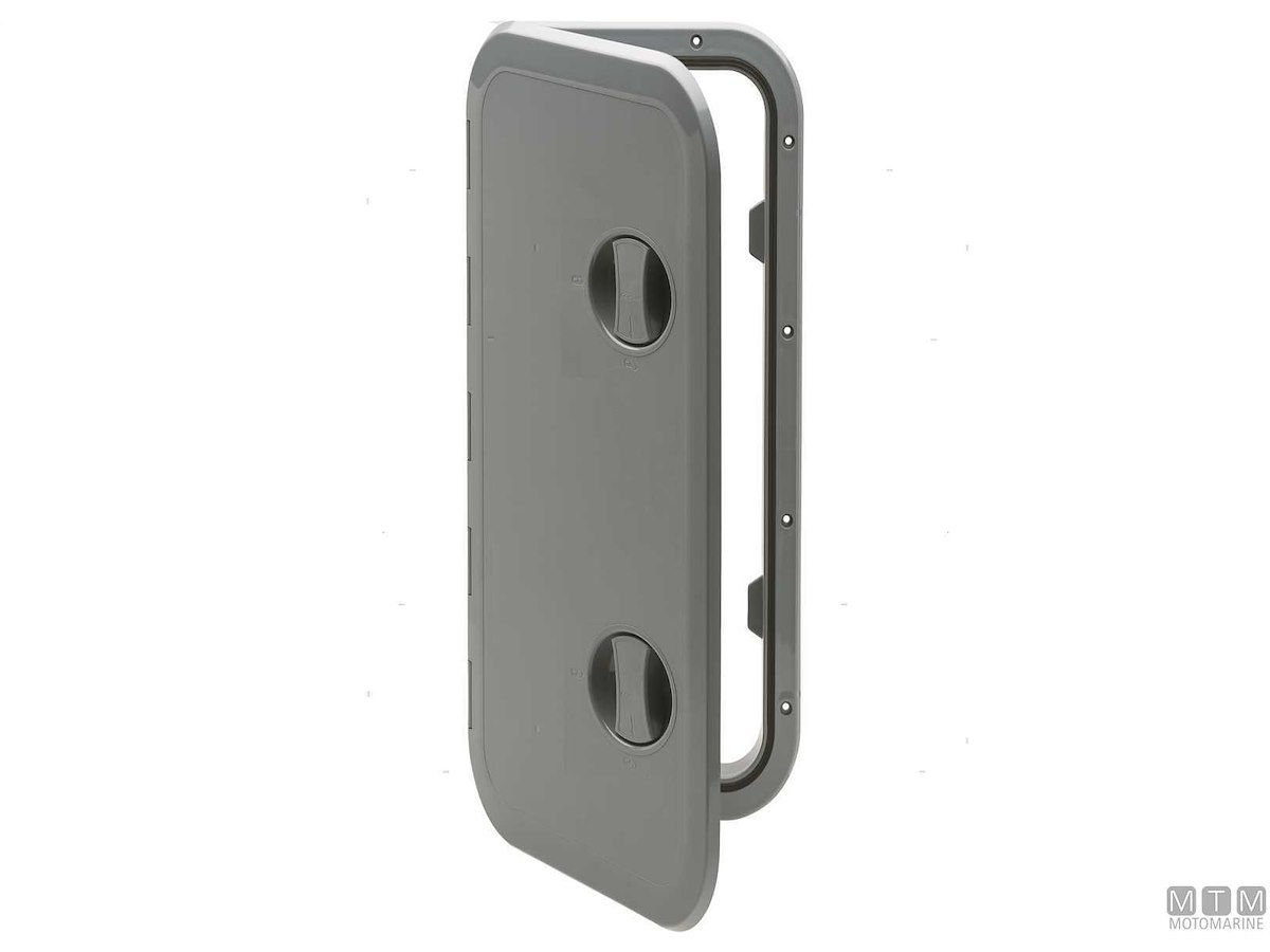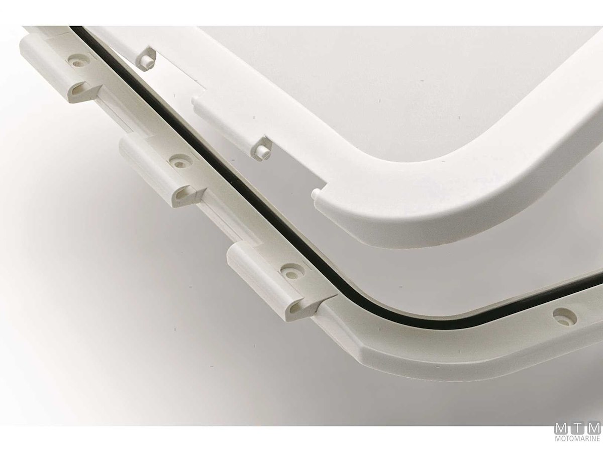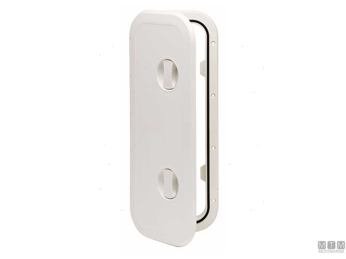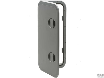 Portello di accesso calpestabile stagno apribile a 180° in ABS ASA resistente ai raggi UV.Sportello con doppio sistema di apertura: uno classico e uno sfilabile.Il sistema sfilabile consente di aprire lo sportello in spazi ristretti.Montaggio su ponte o a paratia.
