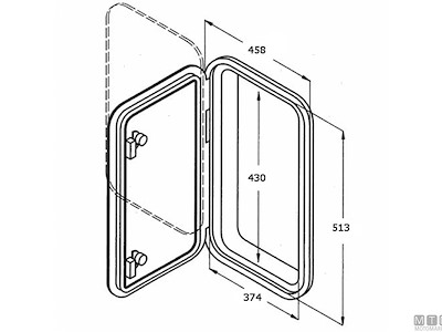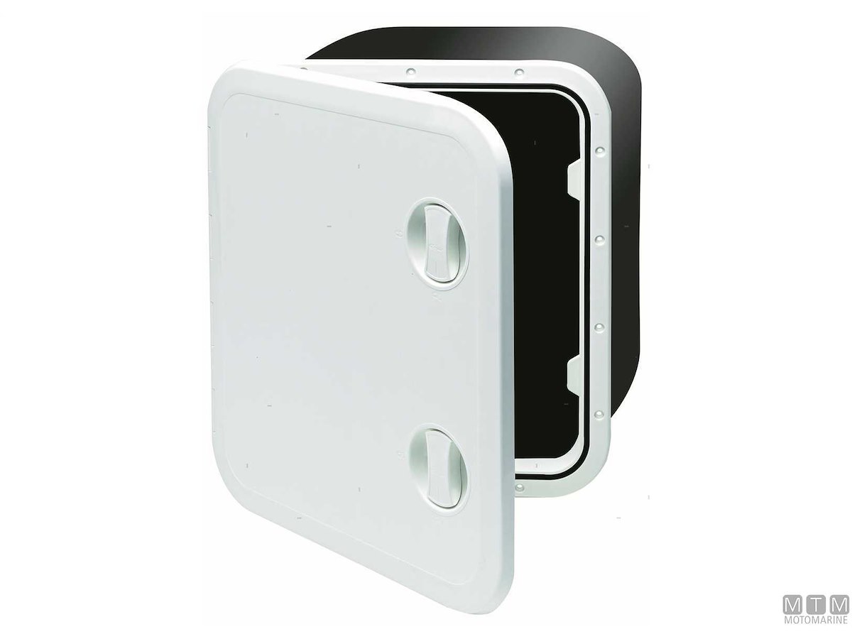 Portello di accesso calpestabile stagno apribile a 180° in ABS ASA resistente ai raggi UV con contenitore.Sportello con doppio sistema di apertura: uno classico e uno sfilabile.Il sistema sfilabile consente di aprire lo sportello in spazi ristretti.