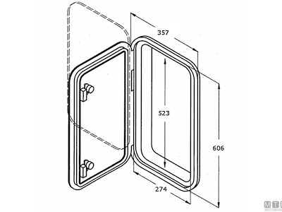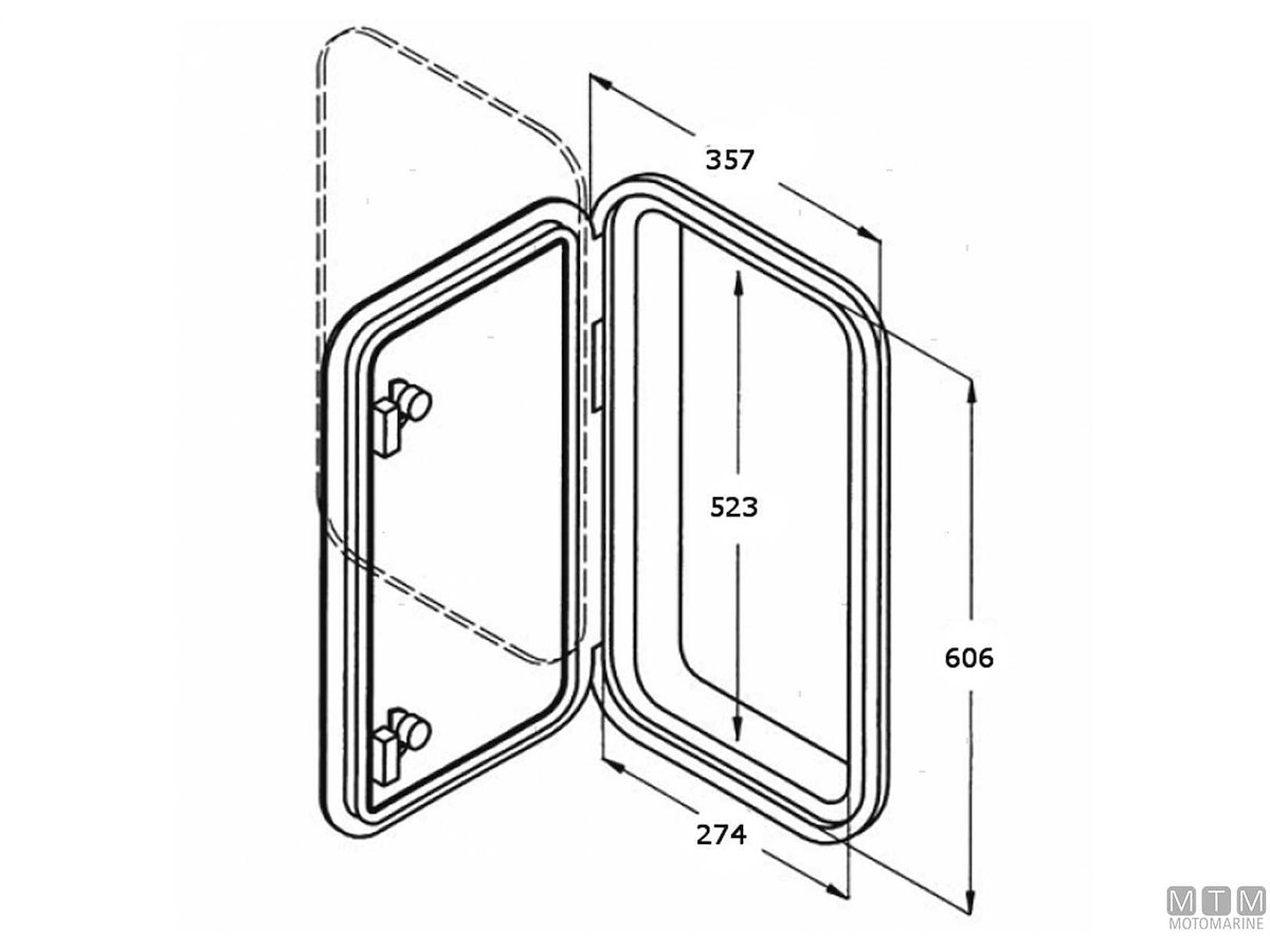 Portello di accesso calpestabile stagno apribile a 180° in ABS ASA resistente ai raggi UV con contenitore.Sportello con doppio sistema di apertura: uno classico e uno sfilabile.Il sistema sfilabile consente di aprire lo sportello in spazi ristretti.