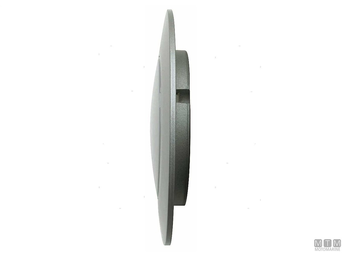 Faretto LED 12V a incasso con base e cornice in Alluminio satinato. Molto sottile con incasso di soli 10 mm. Luce bianca calda 3000 K°, consumo 3,4W.