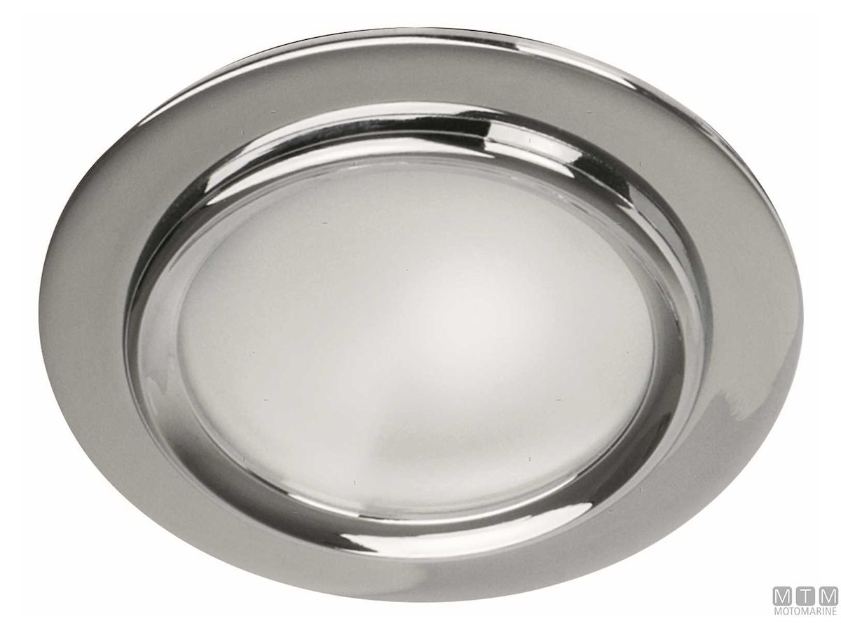 Spot LED ad incasso per interni con cornice in Ottone Cromato e viti in Acciaio Inox. Voltaggio universale 12/24V - 2,5W. Protezione IP43.