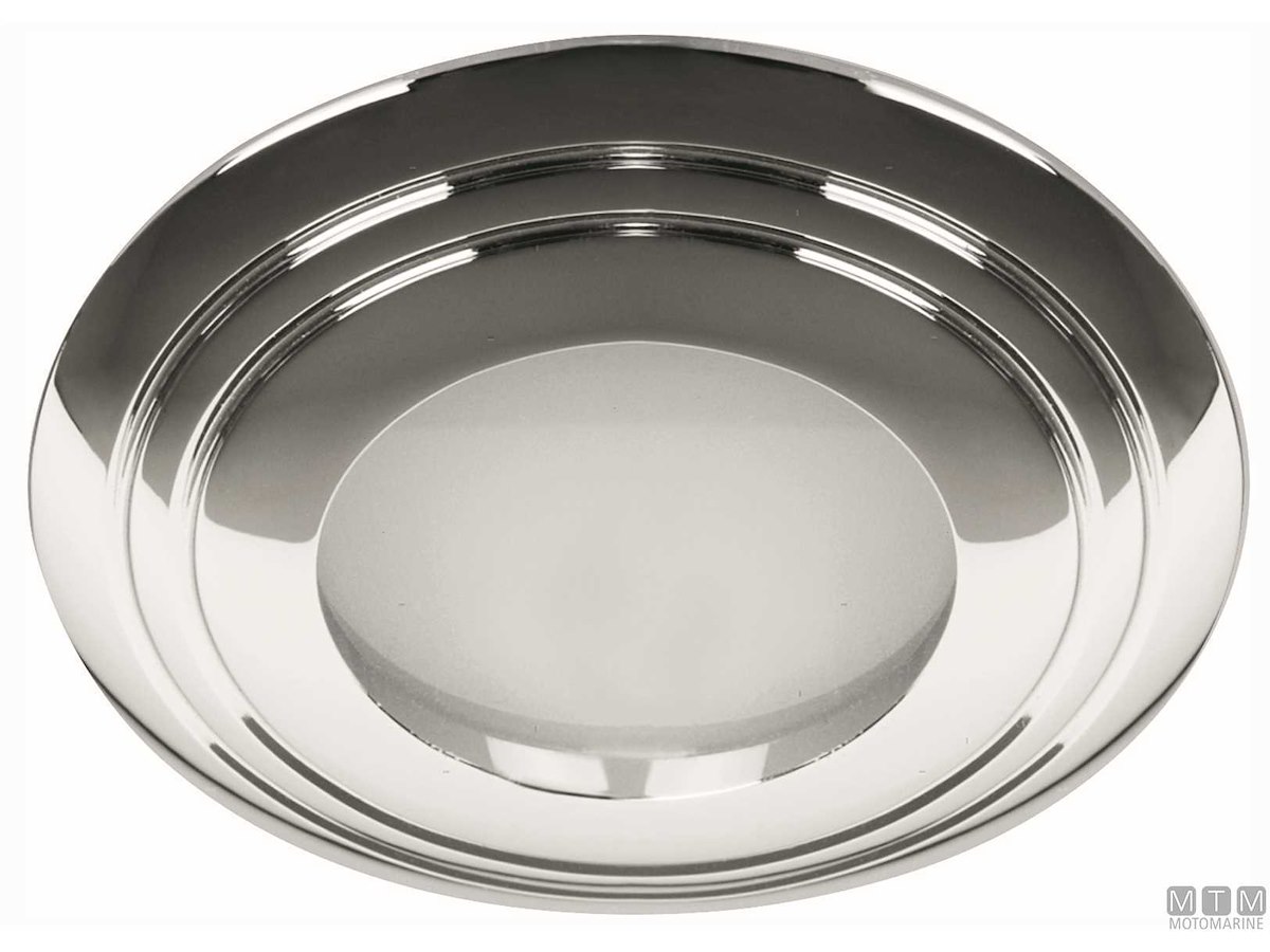 Spot LED ad incasso per interni con cornice in Ottone Cromato e viti in Acciaio Inox. Voltaggio universale 12/24V - 2,5W. Protezione IP43.