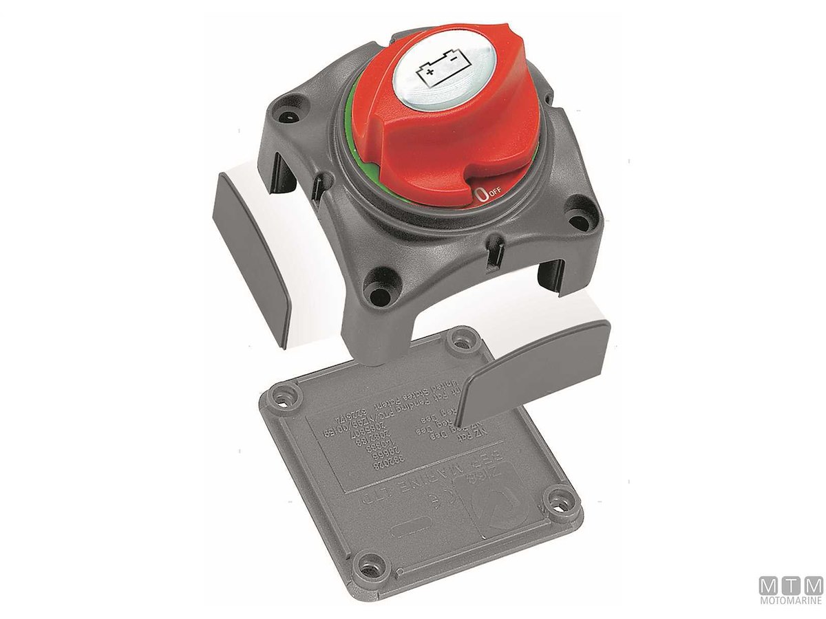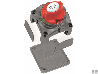 Staccabatterie con manopola e perni M12 in rame stagnato. Collaudato per i valori di corrente e conforme ai requisiti di antideflagranza.