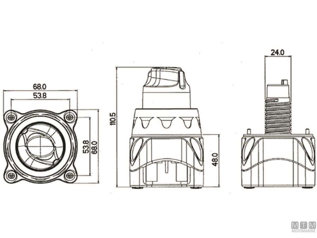 Staccabatterie con manopola e perni M10 in rame stagnato. Grazie al perno filettato Easyfit può essere montato a incasso con semplice foro da 24 mm su pannelli fino a 19 mm di spessore. Collaudato per i valori di corrente e conforme ai requisiti di antideflagranza.