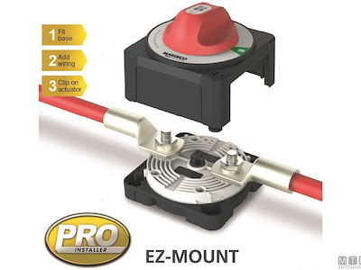 Staccabatterie doppio polo con manopola e perni M10 in rame stagnato. Montaggio a superficie, retro oppure fronte pannello. La versione EZ mount permette un montaggio frontale facilitato. Collaudato per i valori di corrente e conforme ai requisiti di antideflagranza.