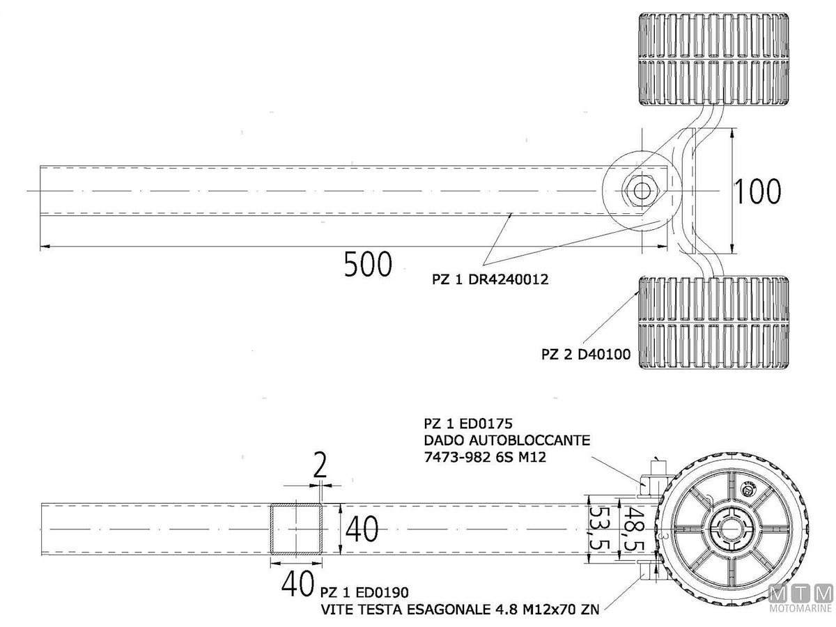 STAFFA 2 RULLI H500MM