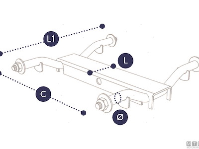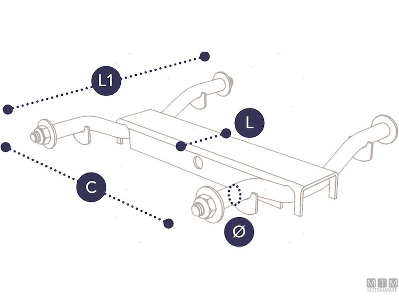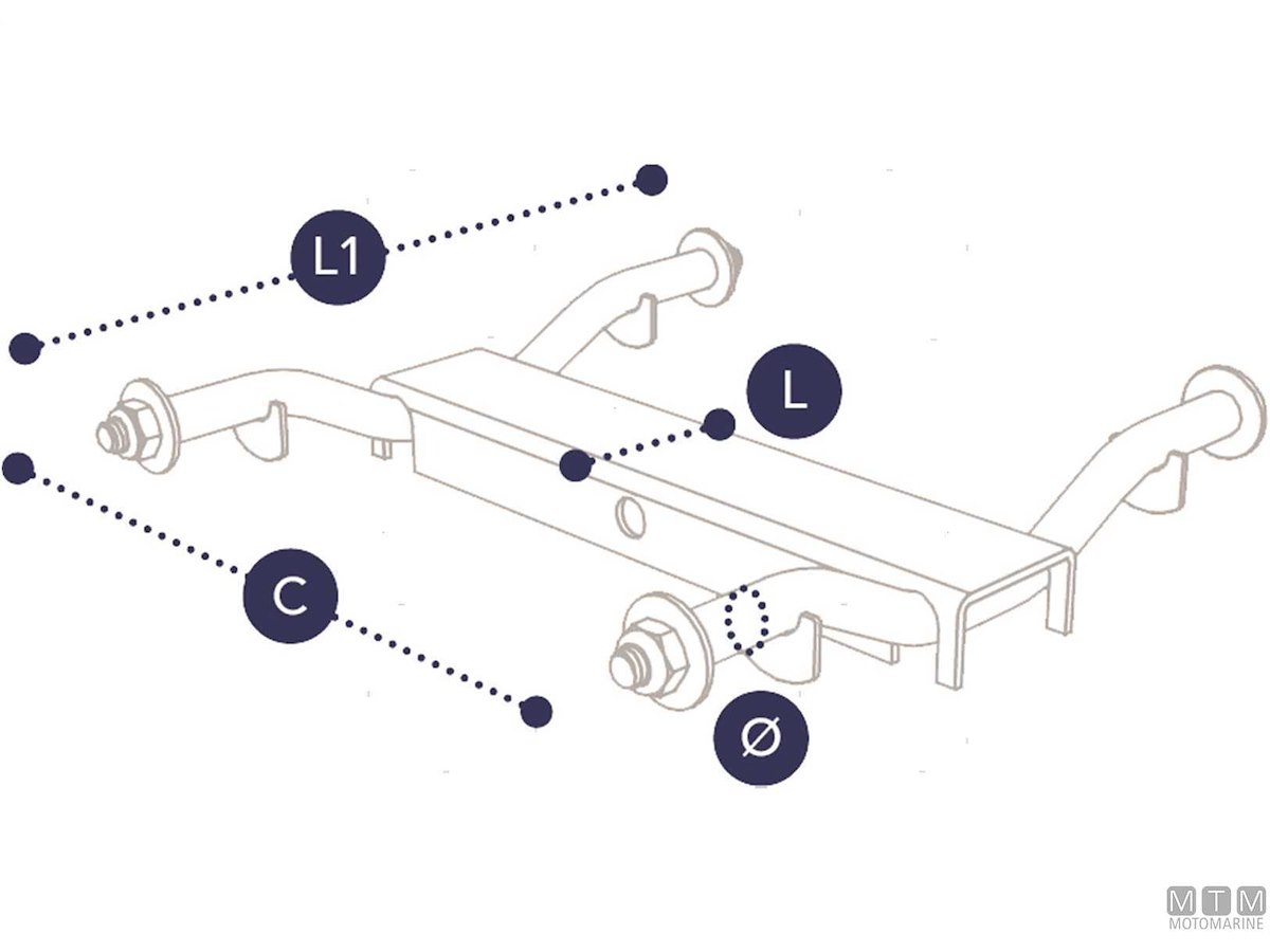 Staffa per rullo laterale quadruplo. Cod.: 2805211 ø mm: 15 L mm: 54 L1 mm: 270 C mm: 230