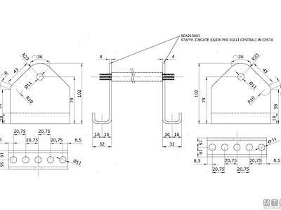 Staffe in Acciaio Zincato per rulli centrali, vendute in coppia. Cod.: 2805200 Dimensioni mm: 100 x H102