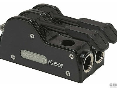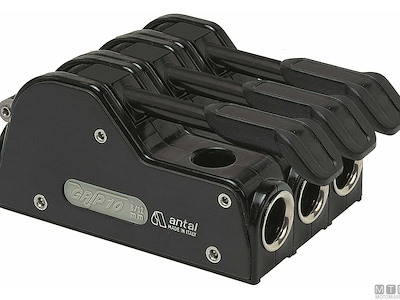 Stopper Antal V-GRIP che aumenta la lunghezza di bloccaggio senza deformare il cavo. Ideale per cavi rigidi come Kevlar, Spectra, Vectran etc. Eccellente su Poliestere. Struttura interna in Acciaio. Possibile il rilascio in tensione senza verricello e il recupero senza apertura dello stopper che blocca la manovra nella nuova posizione. Solo 6,5 cm di altezza.