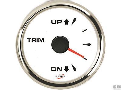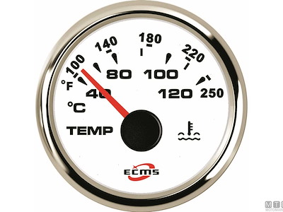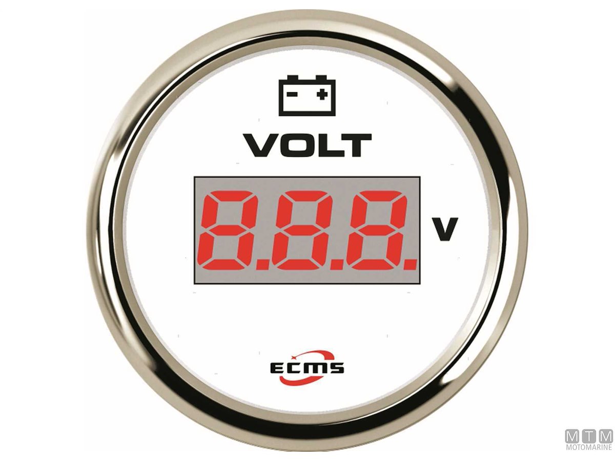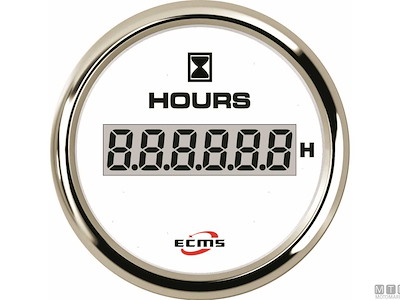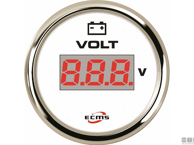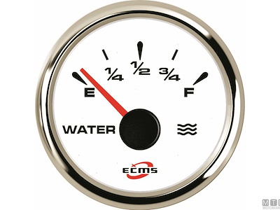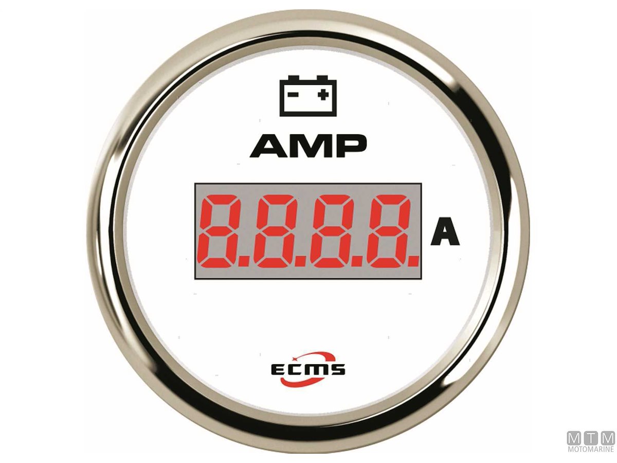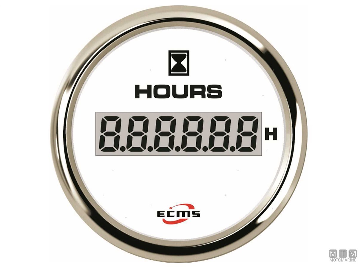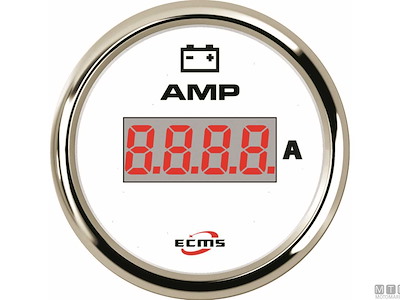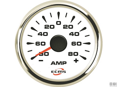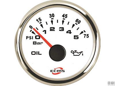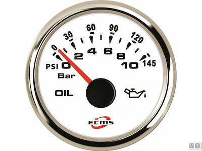 Strumentazione Ecms White Chrome 9-32V completa di cavetti con connettore Molex, cornice in Acciaio Inox 316 con finitura cromata e frontalino impermeabile IP67 con lente bombata anti-appannamento. Quadrante retroilluminato con luce LED personalizzabile in vari colori.  Gli indicatori di livello si possono impostare su qualsiasi valore di impedenza tramite il tasto posteriore di configurazione. Sono pre-impostati sul valore standard 0-190 Ohm.  Gli indicatori pressione olio da 5 e 10 bar sono compatibili con sensori standard (10-180 Ohm), mentre il 30 bar è compatibile solo con sensori elettronici (0,5-4,5V).  Gli amperometri sono completi di sensore (shunt) per misurare la corrente.