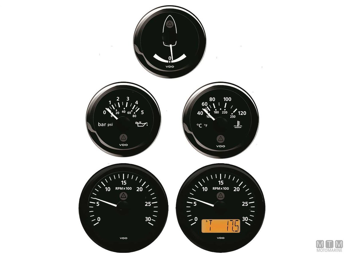 Strumenti VDO View-Line 8-32V completi di cablaggio. Doppio vetro anti-appannamento con protezione frontale IP67. Illuminazione a LED.