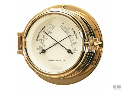 Strumenti meteo professionali Classe 120 in Ottone massiccio lucidato a fuoco. Frontino apribile a cerniera per una facile manutenzione, chiusura a galletto. Vetro minerale resistente estremamente trasparente. Costruzione robusta con finitura accuratissima.