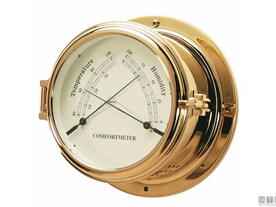 Strumenti meteo professionali Classe 150 in Ottone massiccio lucidato a fuoco. Frontino apribile a cerniera per una facile manutenzione, chiusura a galletto. Vetro minerale resistente estremamente trasparente. Costruzione robusta con finitura accuratissima.