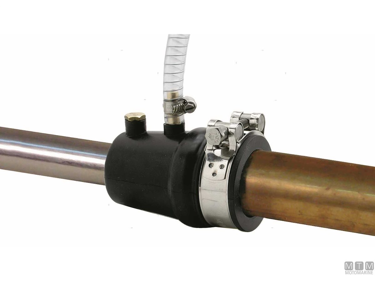 Teste astuccio a guarnizione per assi portaelica metrici con portagomma da 10 mm per il raffreddamento e valvola a vite per la lubrificazione. Confezione completa di istruzioni. Il lubrificante Stuffy Grease va acquistato separatamente.