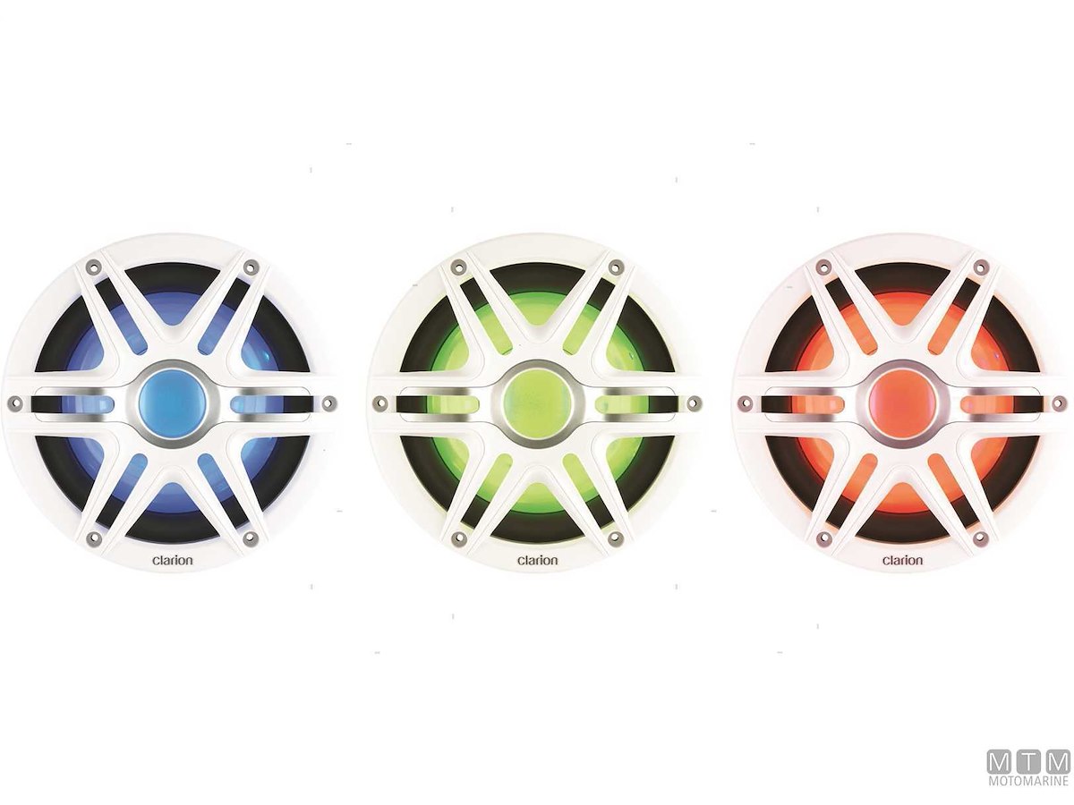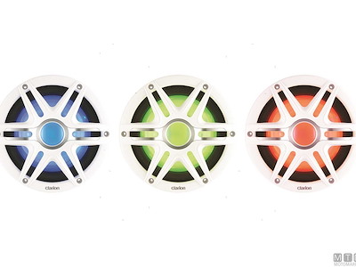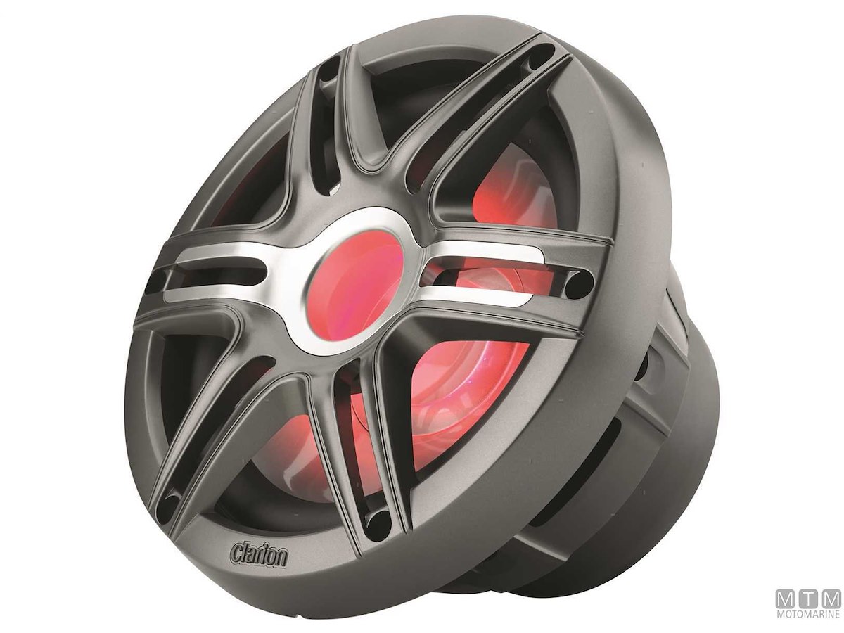 Subwoofer Clarion CMSP-101 con illuminazione LED RGB. Costruito con componenti di qualità marina con cono woofer Infinite Baffle a lunga escursione in polimero iniettato. Completo di connettori e viteria. Le griglie di copertura vanno acquistate a parte.
