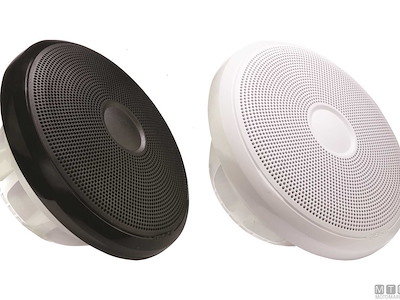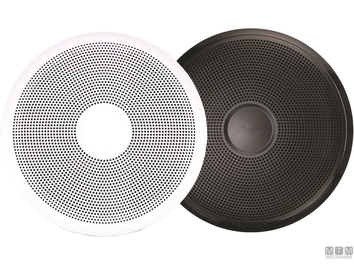 Subwoofer marino Fusion XS impermeabile IP65. Fornito con griglia bianca e griglia nera intercambiabili.