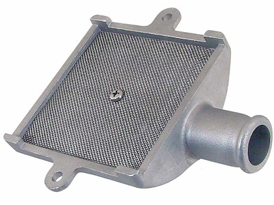 Succhiarola in Acciaio Inox 316 con elemento filtrante in rete 18/8 e portagomma per tubo.