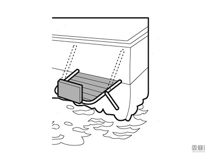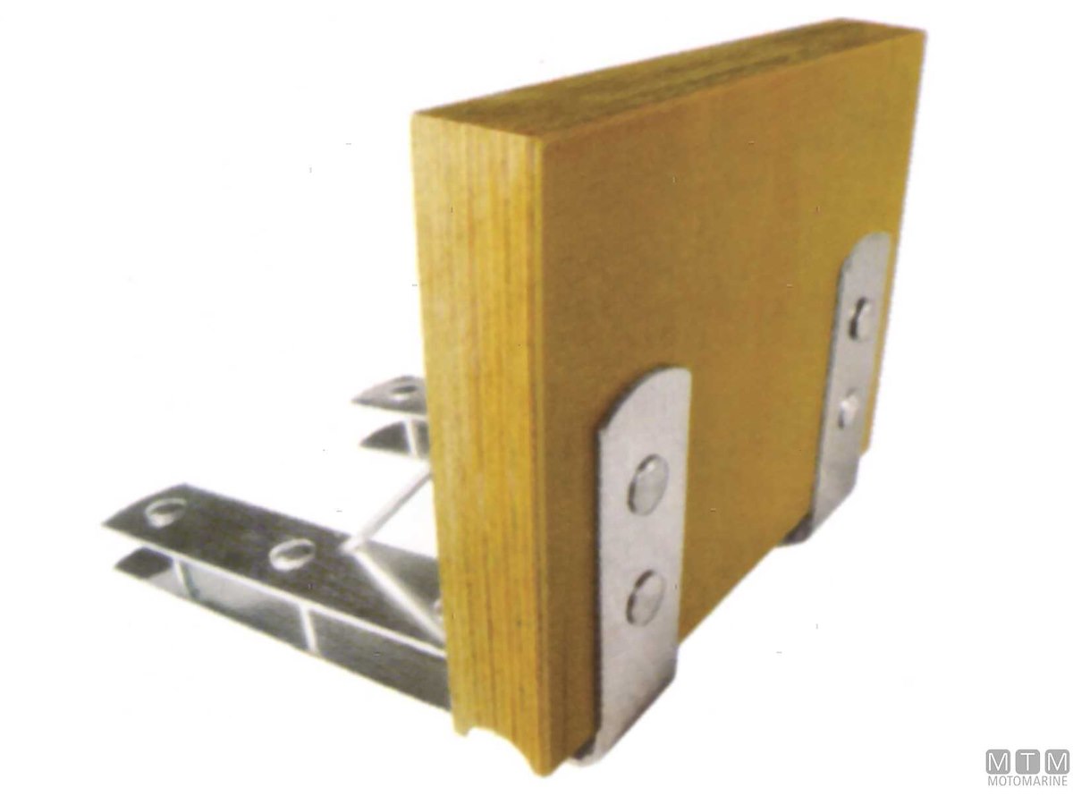 Supporto motore con staffe in Acciaio Inox e piastra in Compensato Marino. Montaggio con viti passanti su plancette di poppa. Interasse staffe 135 mm. Lunghezza base staffe 250 mm.