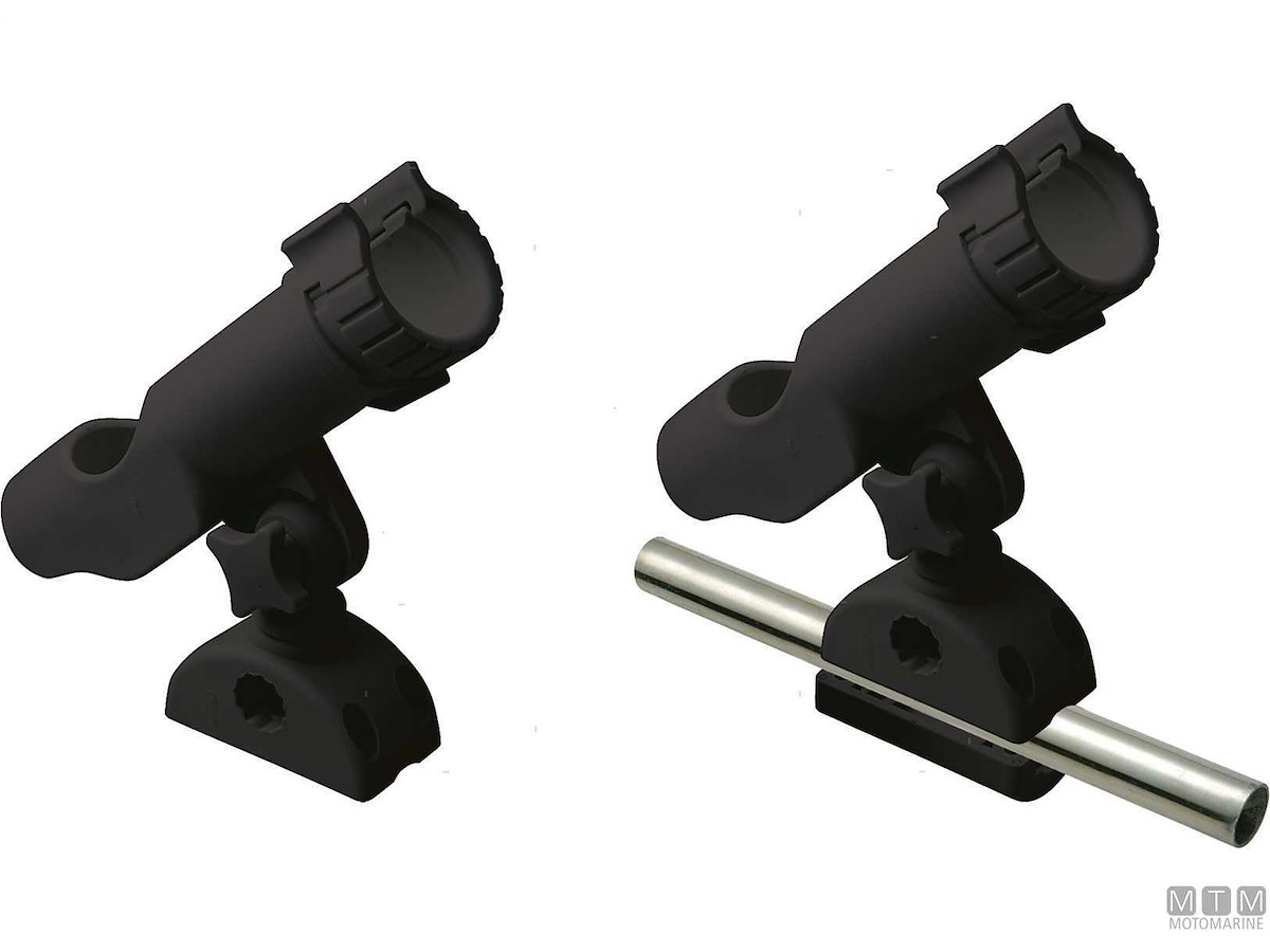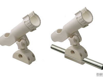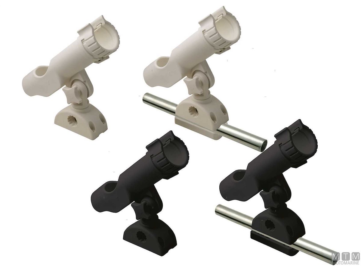 Supporto portacanne orientabile in Nylon rinforzato con possibilità di montaggio a base e su tubo.
