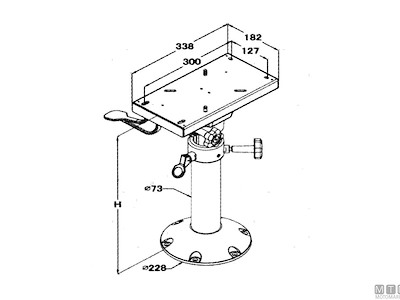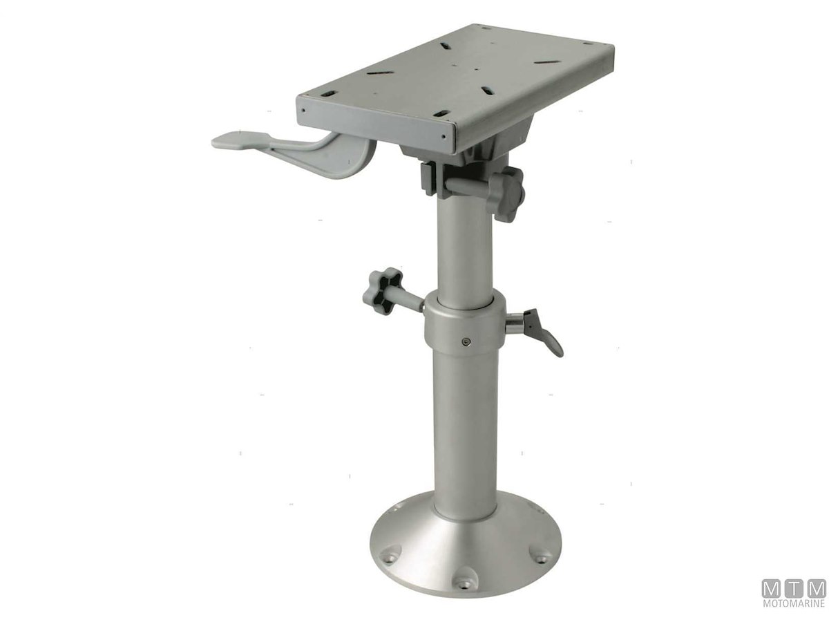 Supporto sedile Master in Alluminio Anodizzato con altezza regolabile. Testa girevole con slitta avanti-indietro. Sistema di regolazione altezza: manuale. Attacco universale per tutti i sedili.