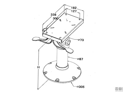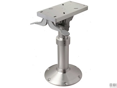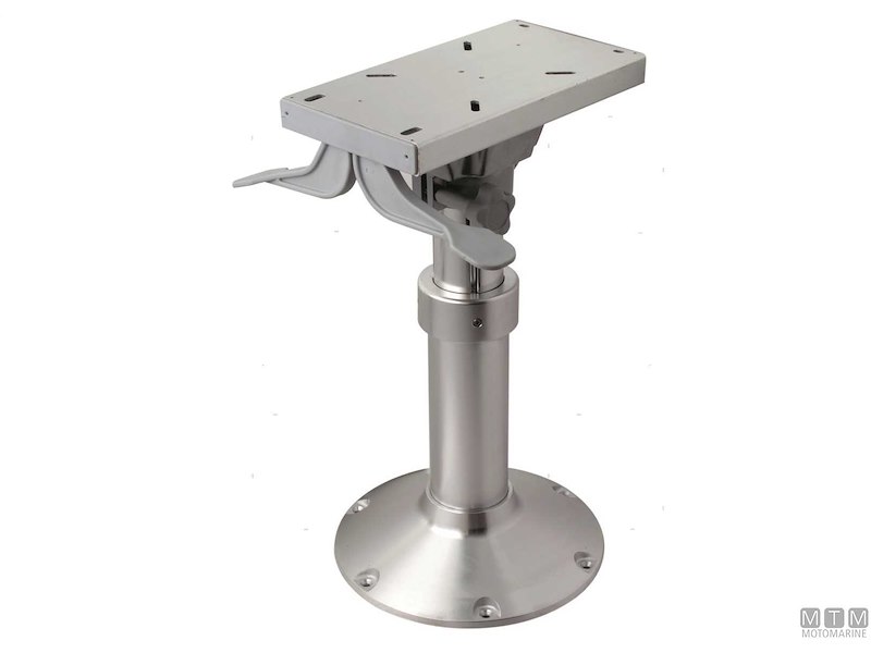 Supporto sedile Ocean Air-Powered in Alluminio Anodizzato con altezza regolabile a gas. Testa girevole con slitta avanti-indietro. Elegante e molto robusto, base universale per tutti i sedili.