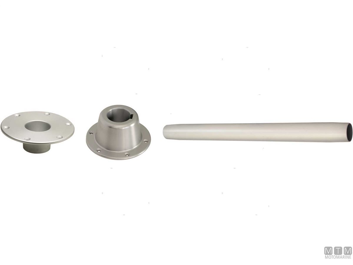 Supporto tavolo scomponibile in Alluminio Anodizzato con base a incasso. Altezza 62 cm.