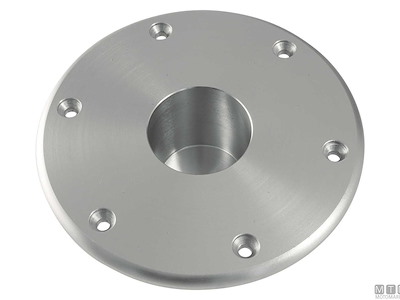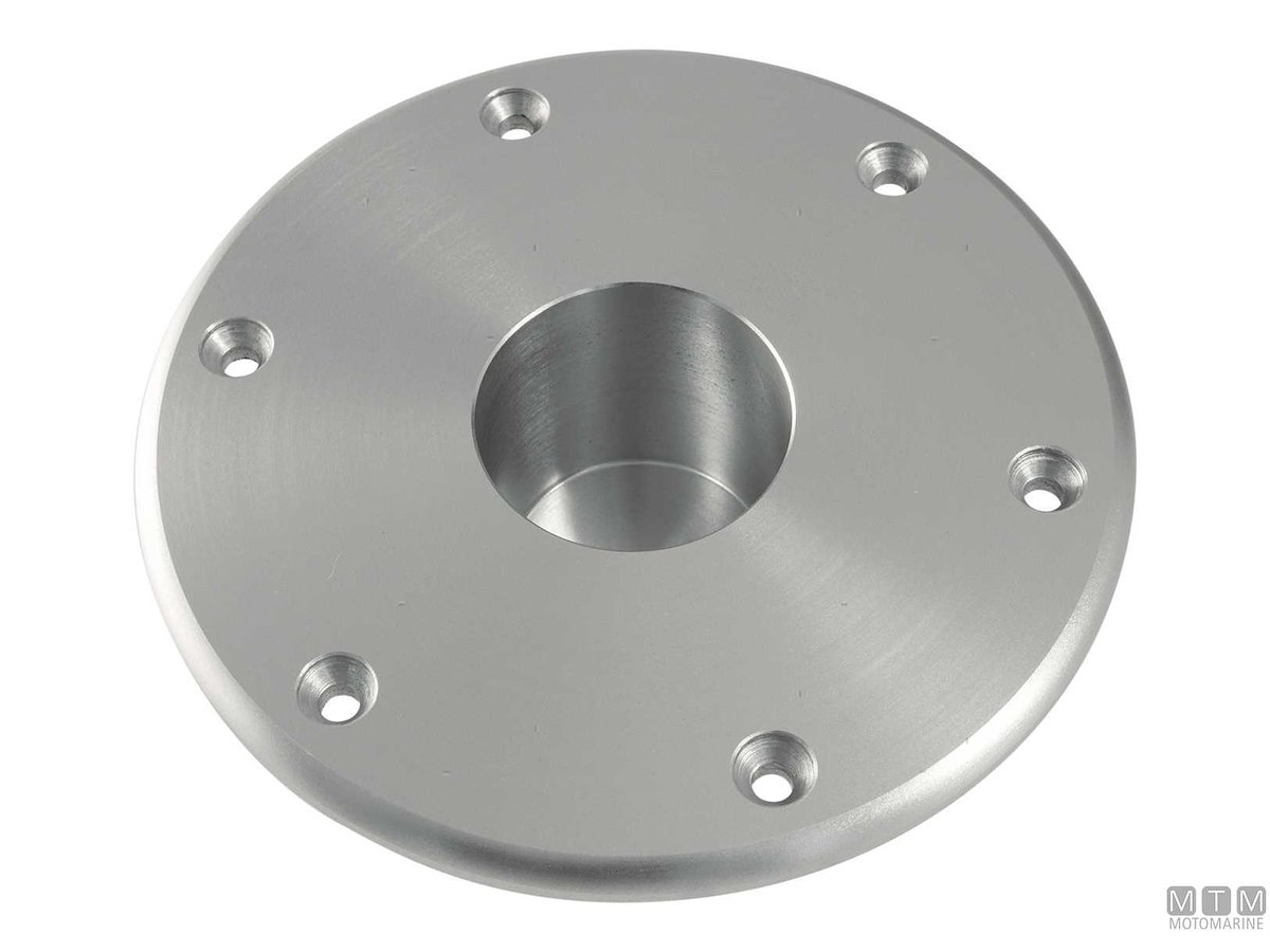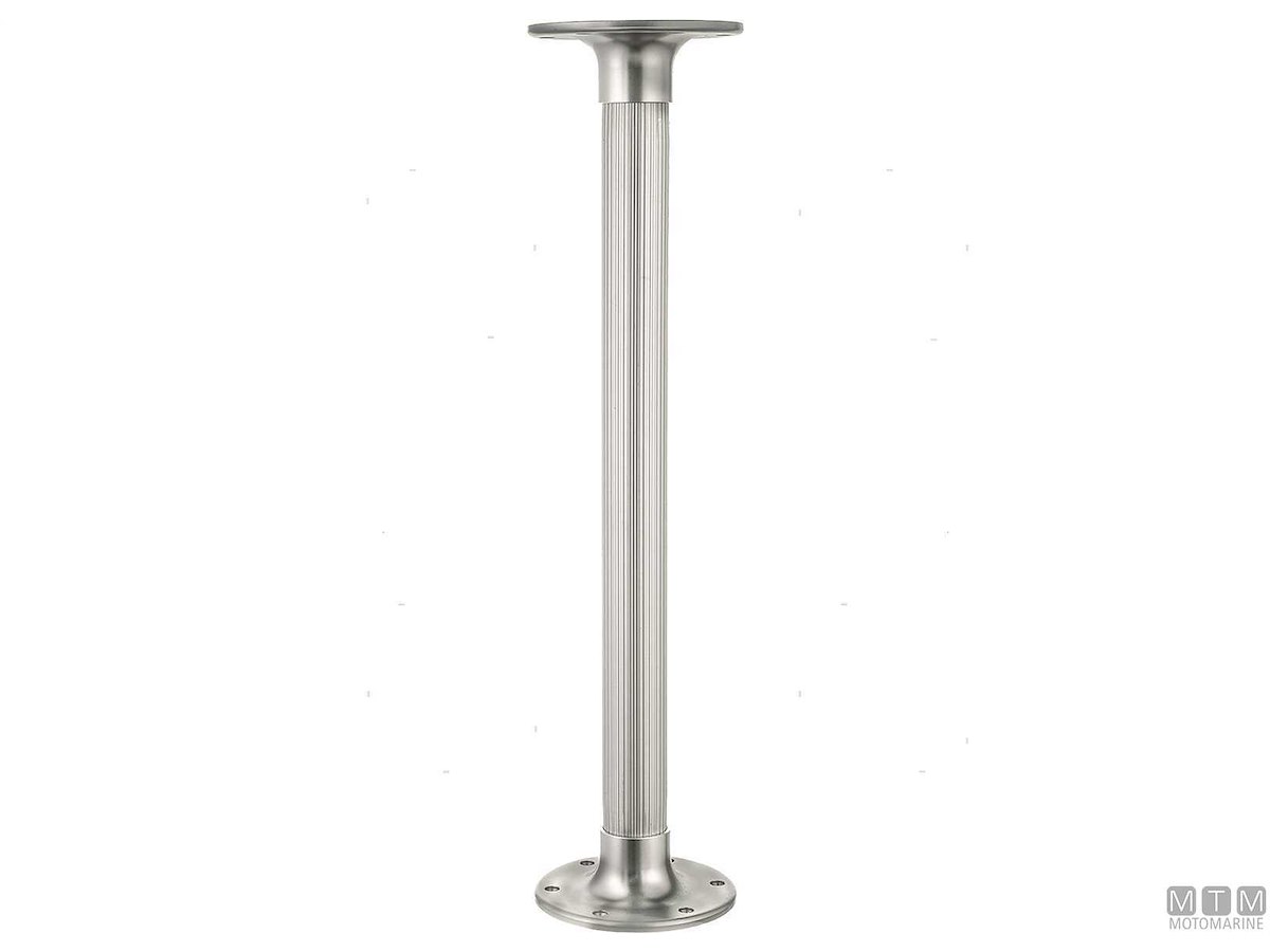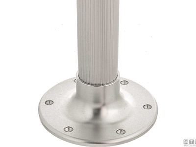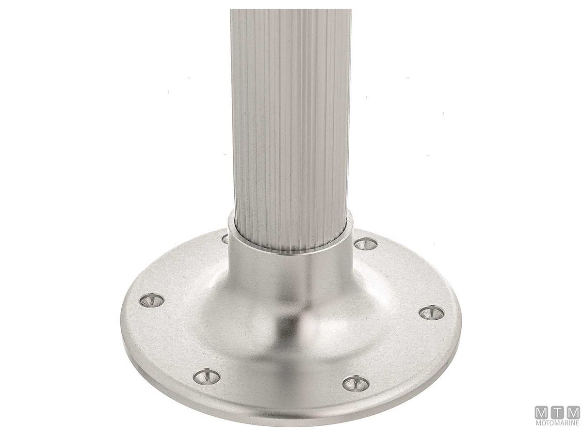 Supporto tavolo con altezza fissa in Alluminio Anodizzato marino satinato. La base a filo opzionale a incasso permette al supporto di essere spostato in seconda posizione oppure di essere rimosso dalla posizione principale per lasciare il ponte libero. Diametro tubo 60 mm, diametro basi 180 mm.