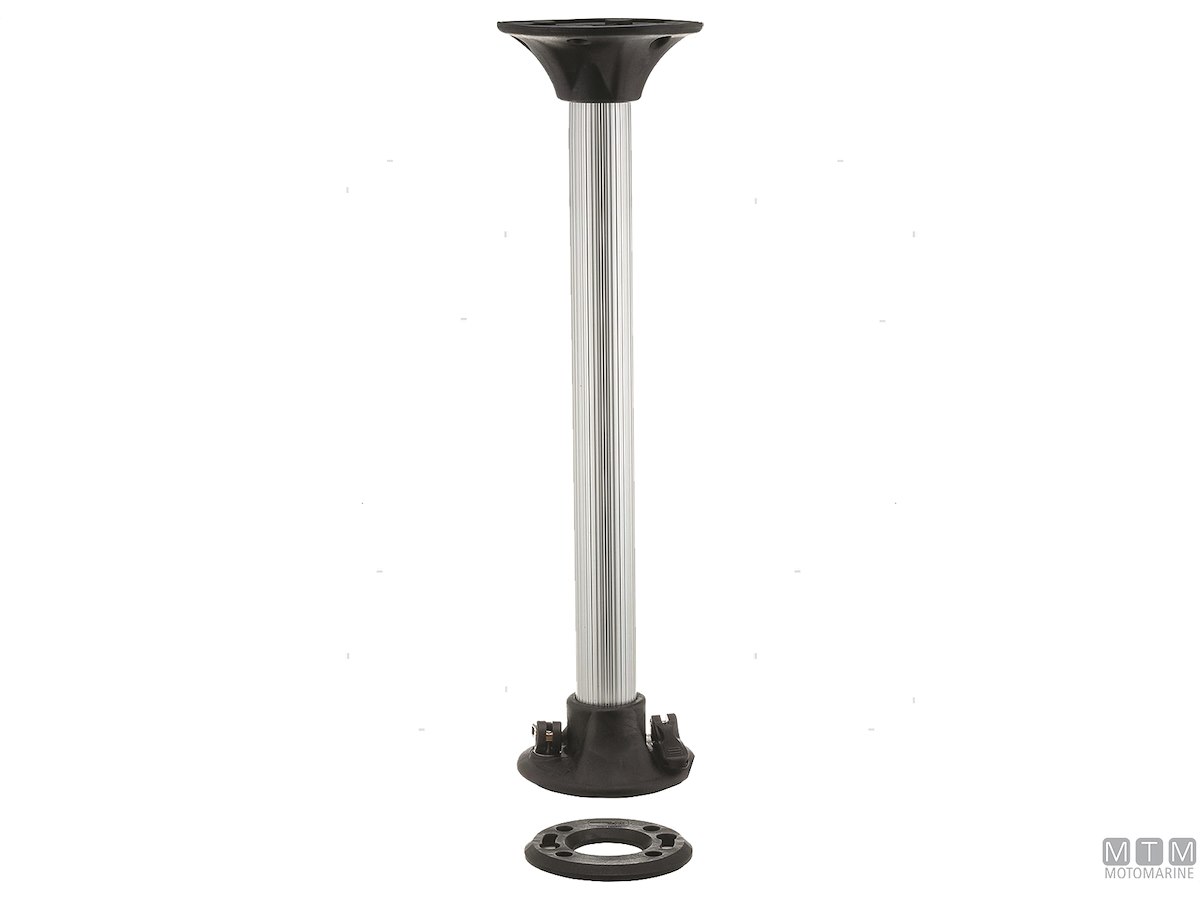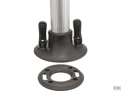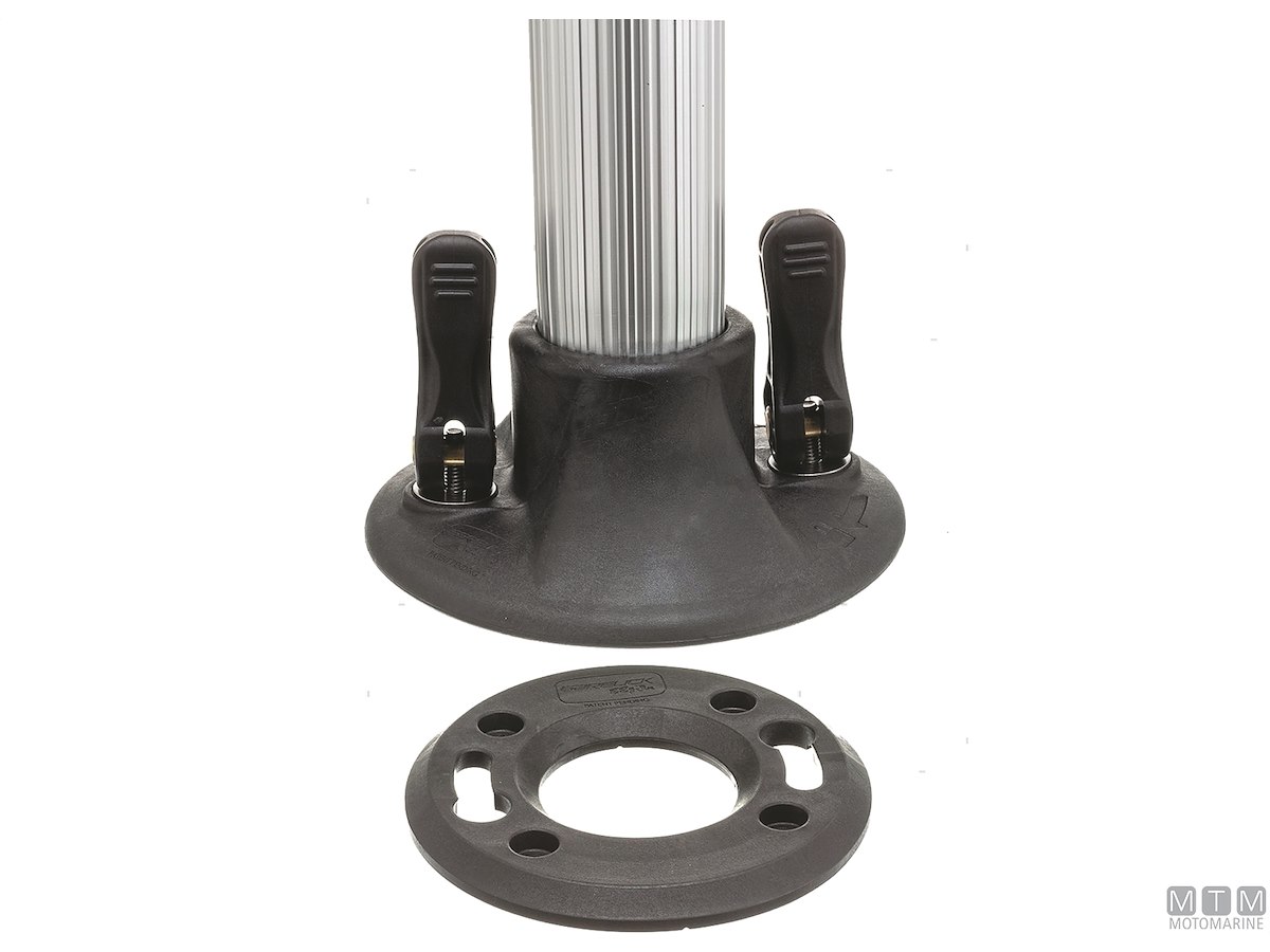 Supporto tavolo in Alluminio Anodizzato satinato con basi in polimero marino resistenti alla corrosione. Il sistema Twist-Lock permette di fissare oppure rimuovere il supporto dalla base a filo lasciando libero il ponte senza la necessità di praticare fori per l'installazione. Diametro tubo 60 mm, base superiore 180 mm, base inferiore 170 mm.