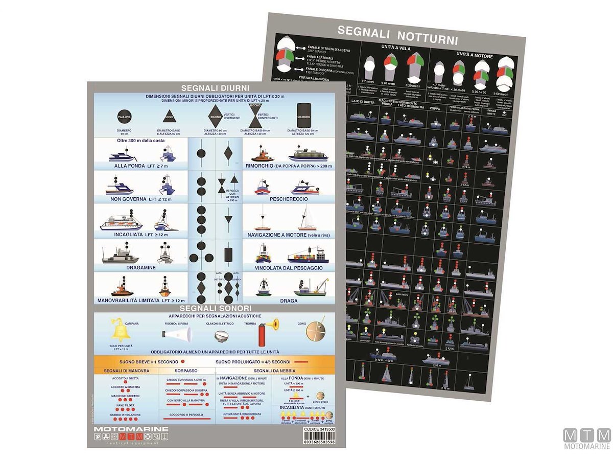 Tabella dei segnali visivi diurni e notturni COLREG72 realizzata in cartoncino plastificato. Cod.: 3419500