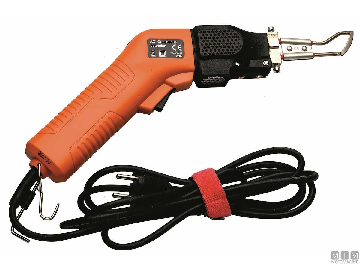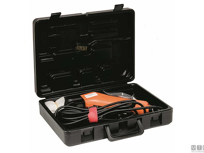 Tagliacorde elettrico professionale 220V/90W per uso continuo. Raggiunge 500°C in pochi secondi e taglia velocemente cime, corde e trecce anche di grosso diametro. Si raffredda subito grazie al sistema di raffreddamento a ricircolo d'aria. Adatto anche per tagliare vele, tende, cinghie, nastri e qualsiasi tessuto sintetico. Completo di lama, spazzola per pulire residui e cavo da 3 metri. Fornito con valigetta portatile.