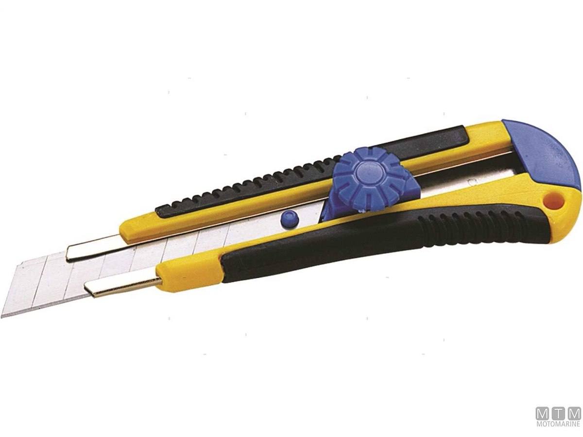 Taglierino da lavoro con lama grande H18 mm, guida in metallo e fermo lama a vite.Lame ricambio in confezioni da 10 pezzi.