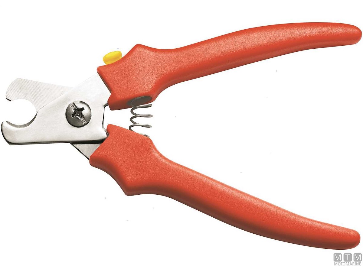 Tenaglia tagliacima di sicurezza galleggiante con molla ad apertura e blocco. Manico in PP, tenaglie in Acciaio Inossidabile W1.4028.
