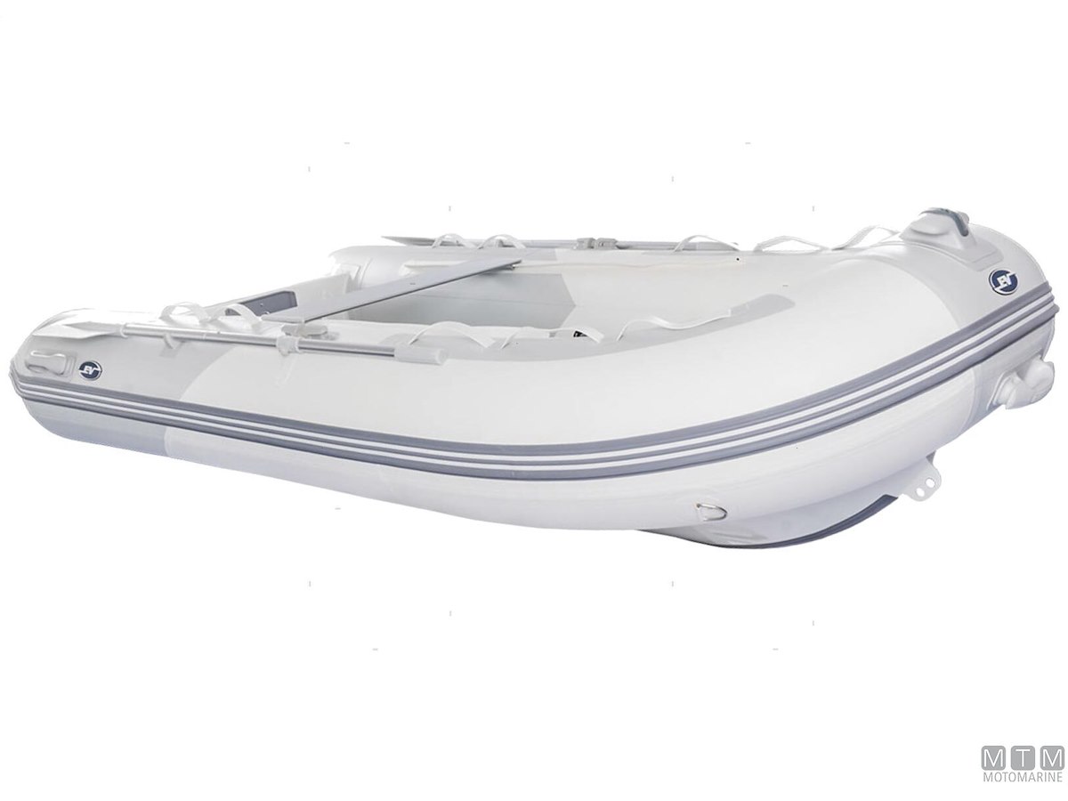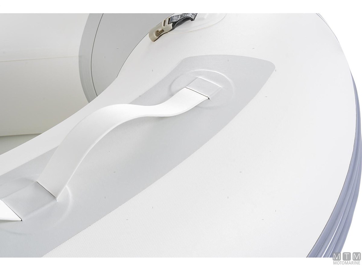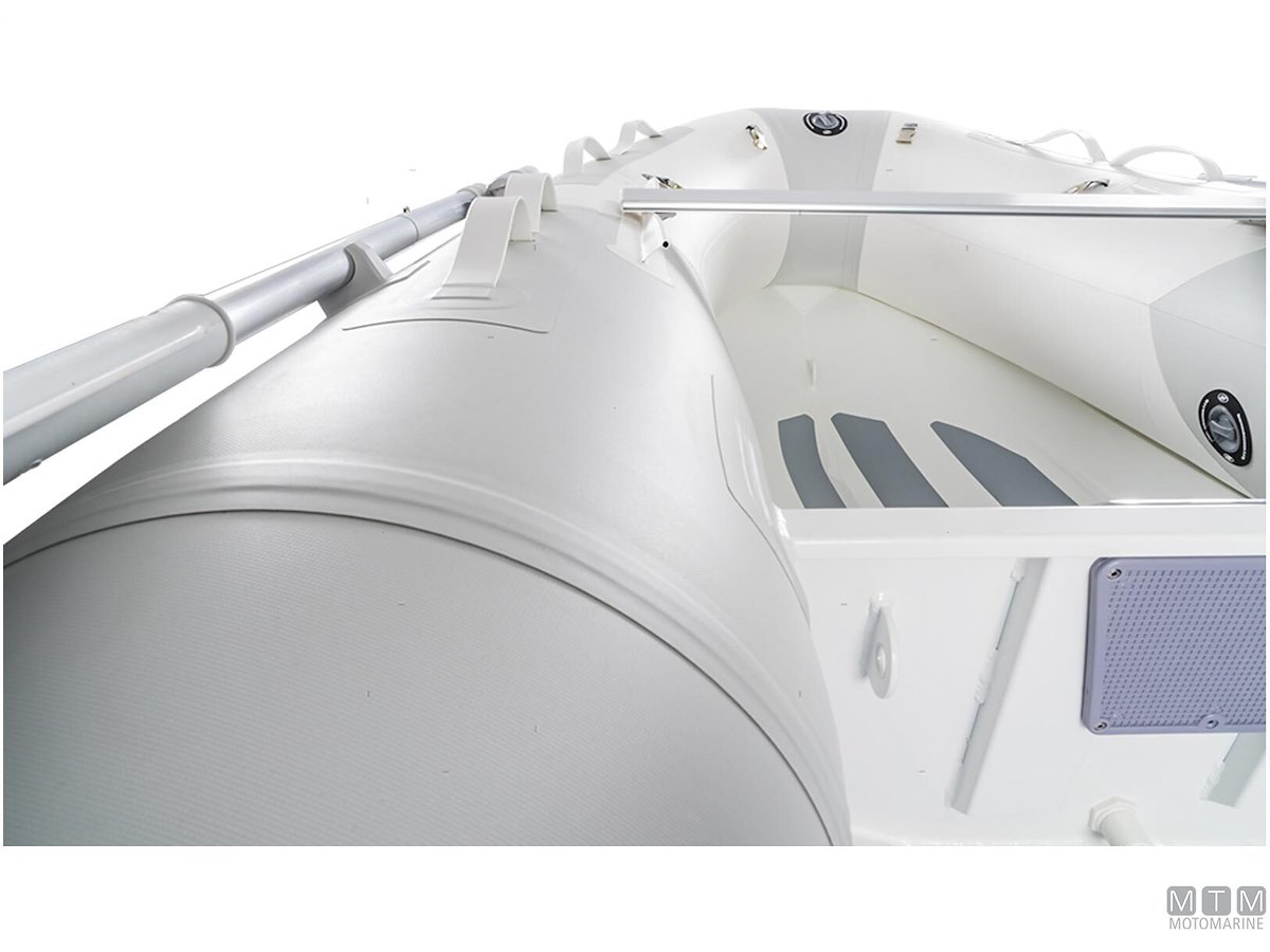 Tender in tessuto ad alta resistenza con doppia spalmatura PVC 1100Dtex. Molto leggero, con carena rigida in Alluminio Anodizzato e ampi tubolari che garantiscono una navigazione confortevole in planata anche con basse potenze. I modelli 250 e 270 sono dotati di carena singola senza gavone di prua, mentre i modelli 290 e 320 hanno carena in controstampata con gavone di prua. Dotazione di serie: gonfiatore, kit riparazione, remi, panchetta, cima di ormeggio e sacca portabattello.