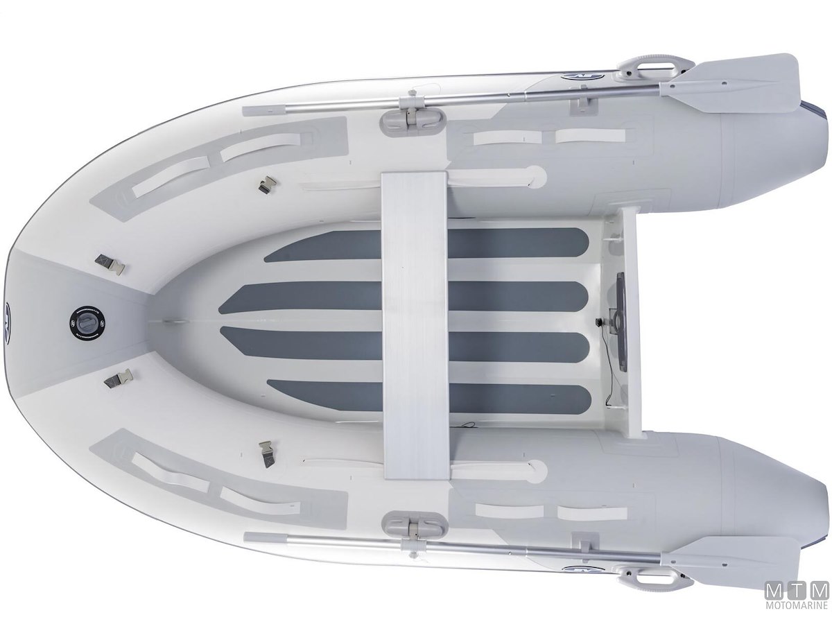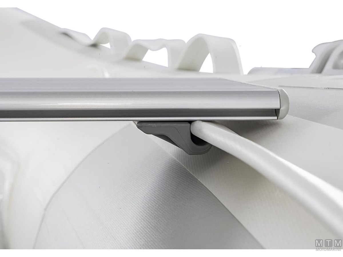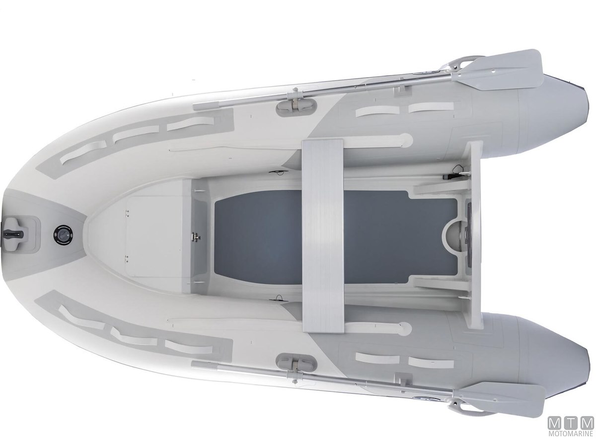 Tender in tessuto ad alta resistenza con doppia spalmatura PVC 1100Dtex. Molto leggero, con carena rigida in Alluminio Anodizzato e ampi tubolari che garantiscono una navigazione confortevole in planata anche con basse potenze. I modelli 250 e 270 sono dotati di carena singola senza gavone di prua, mentre i modelli 290 e 320 hanno carena in controstampata con gavone di prua. Dotazione di serie: gonfiatore, kit riparazione, remi, panchetta, cima di ormeggio e sacca portabattello.