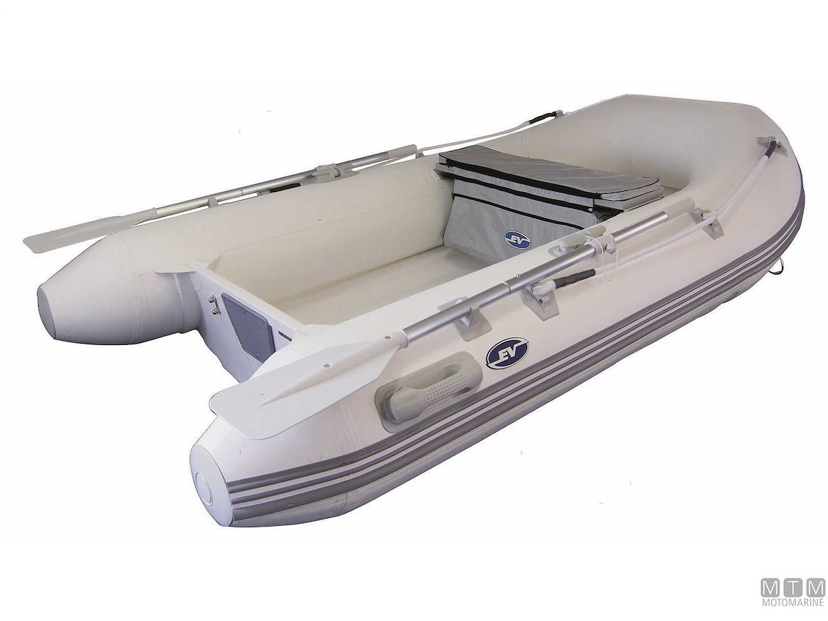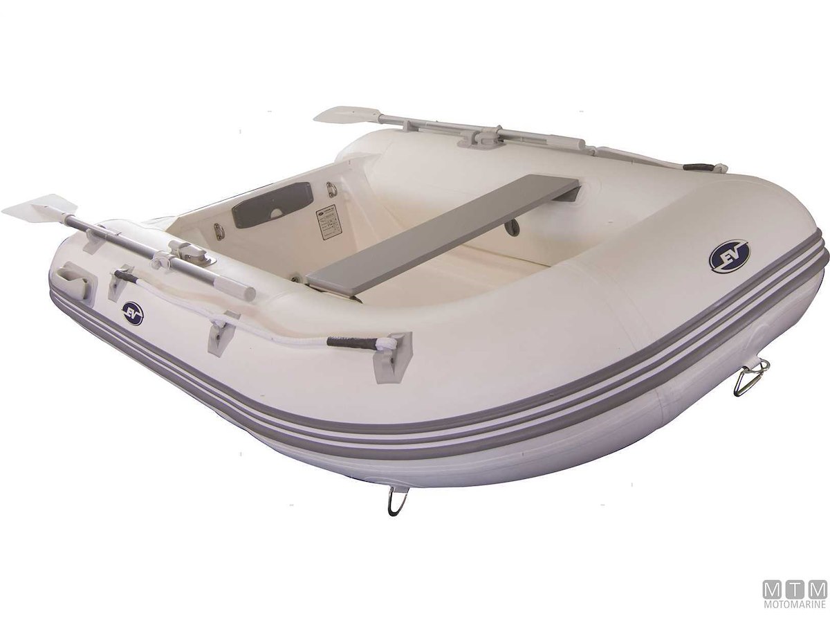 Tender in tessuto PVC ad alta resistenza 1100D con fondo in Vetroresina realizzato con tecnologia sottovuoto innovativa, particolarmente robusto, leggero e performante anche con motorizzazioni di potenza contenuta. Tubolari di grande diametro con parabordo antispruzzo per garantire una navigazione confortevole. Dotazione di serie: gonfiatore, kit di riparazione, remi, panchetta, cima di ormeggio e sacca portabattello.