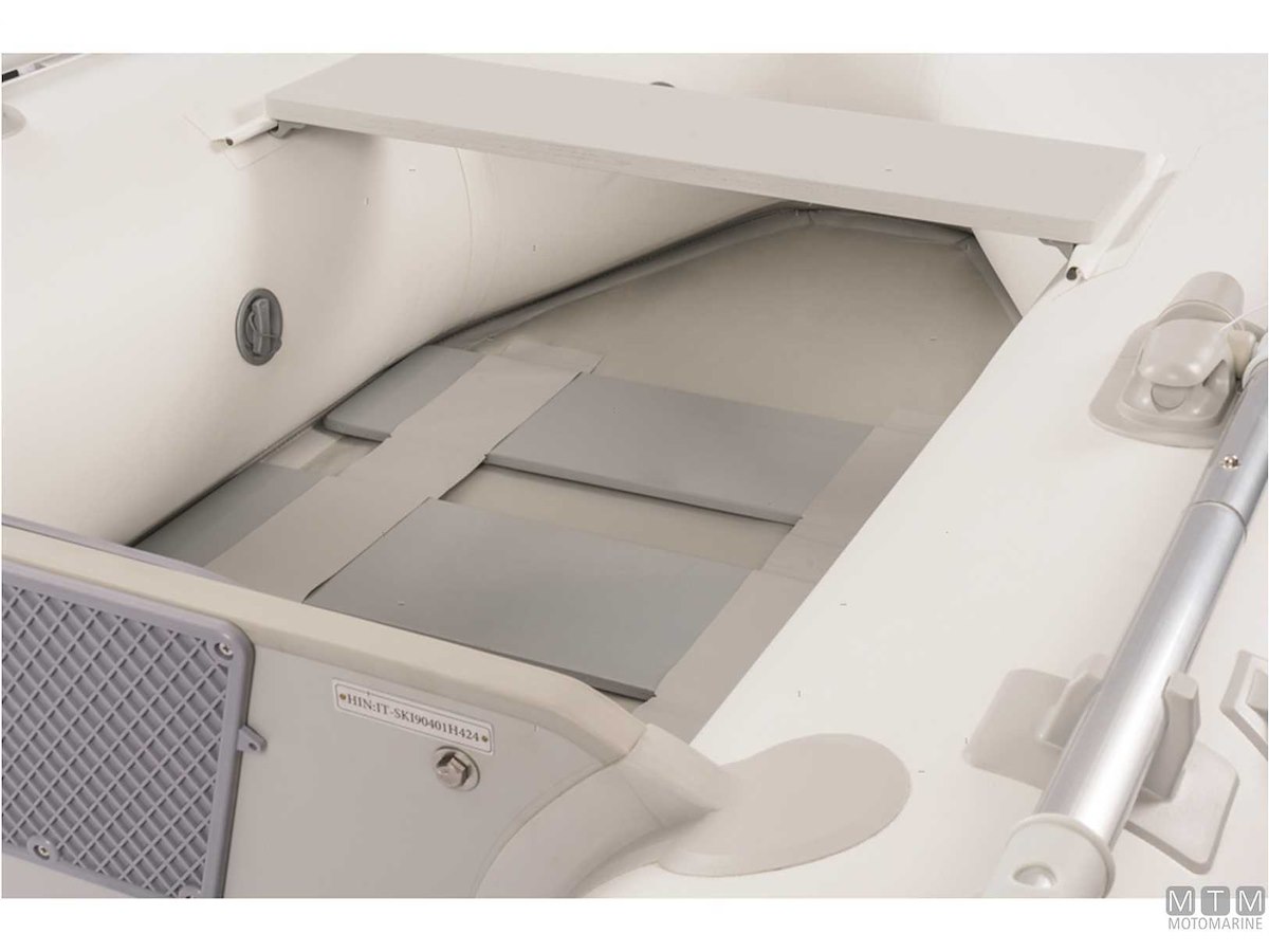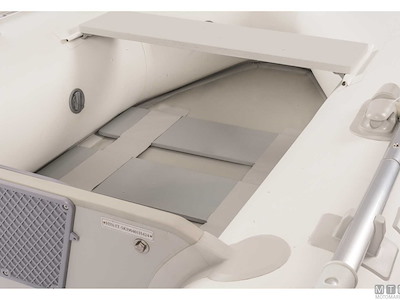 Tender in tessuto ad alta resistenza 1100D spalmato PVC termosaldato molto leggero e avvolgibile, può essere facilmente arrotolato e stivato in un gavone. Dotato di ampi tubolari con parabordo antispruzzo e fondo rinforzato con stecche. Completo di gonfiatore, kit riparazione, remi, panchetta, cima ormeggio e sacca portabattello.