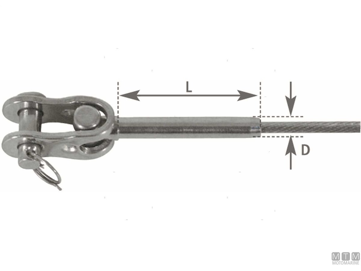 Terminali a pressare in Acciaio Inox AISI 316 con forcella snodata.