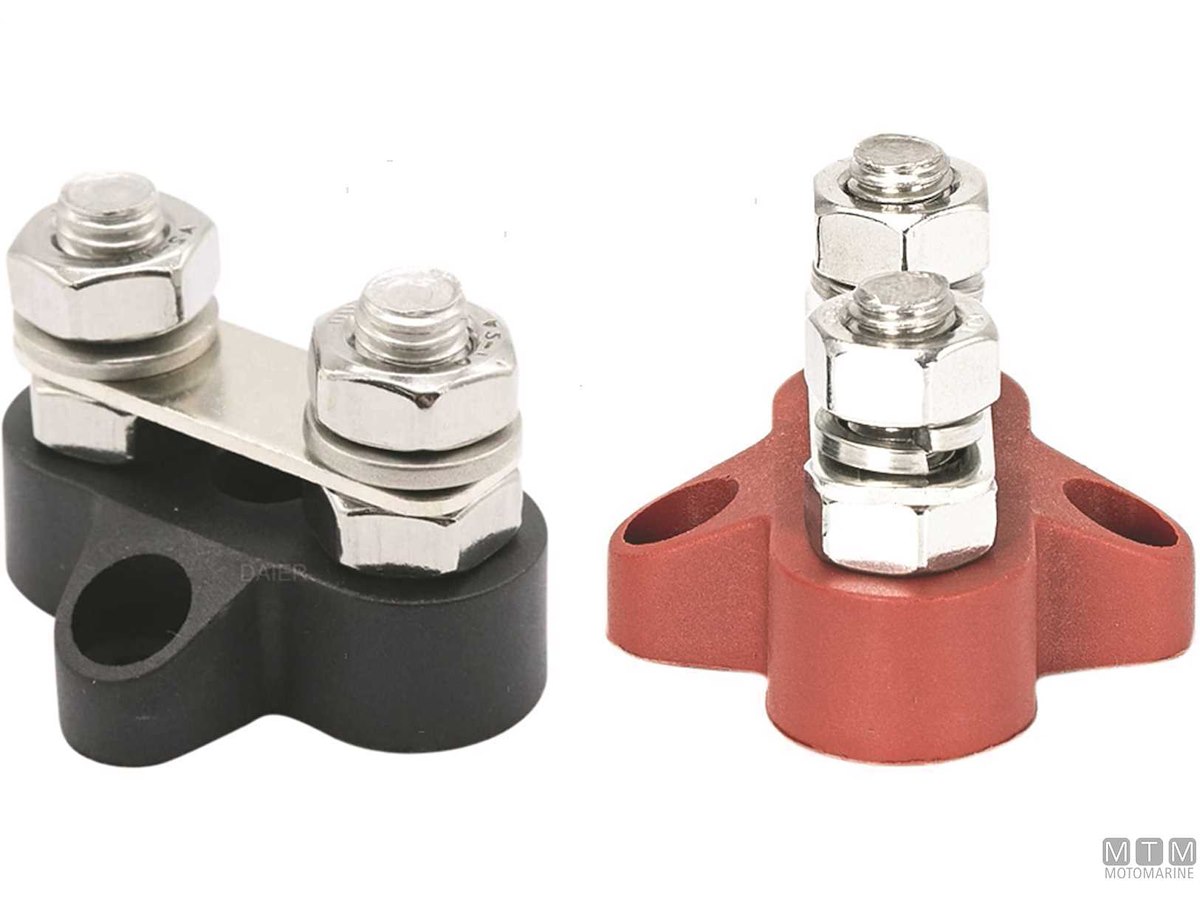 Terminali di derivazione con base isolata e due perni in Acciaio Inox filettato M8.