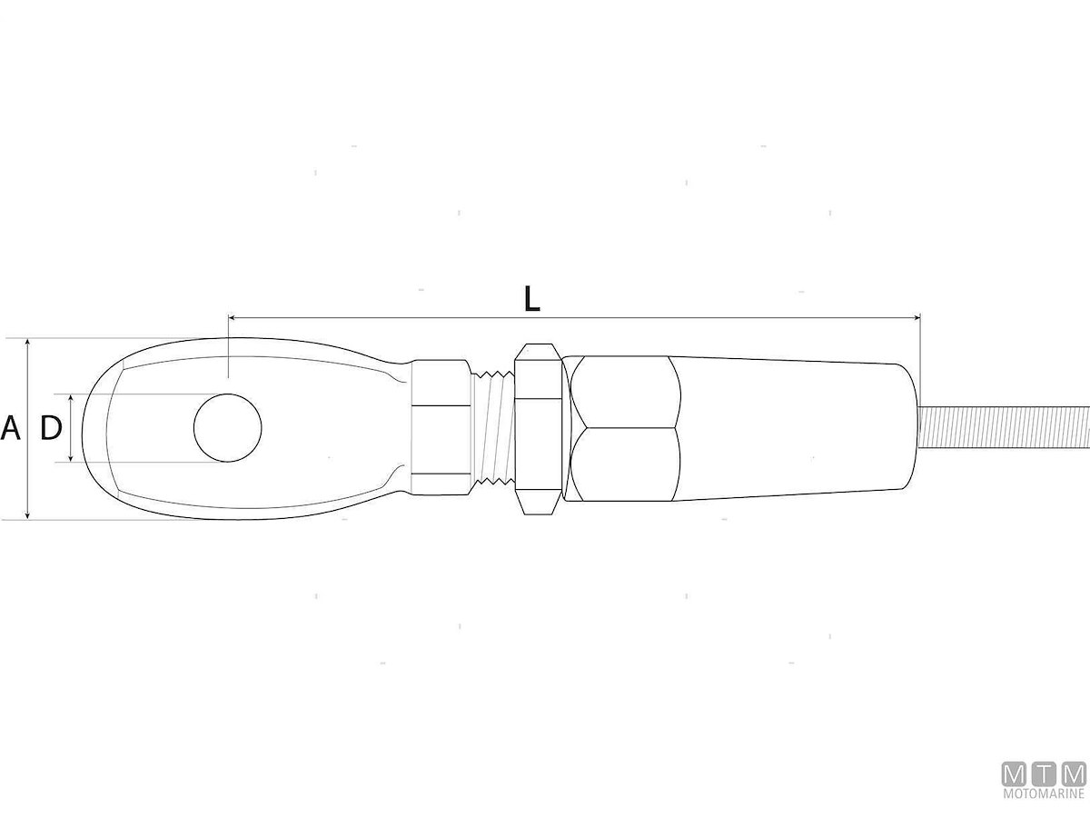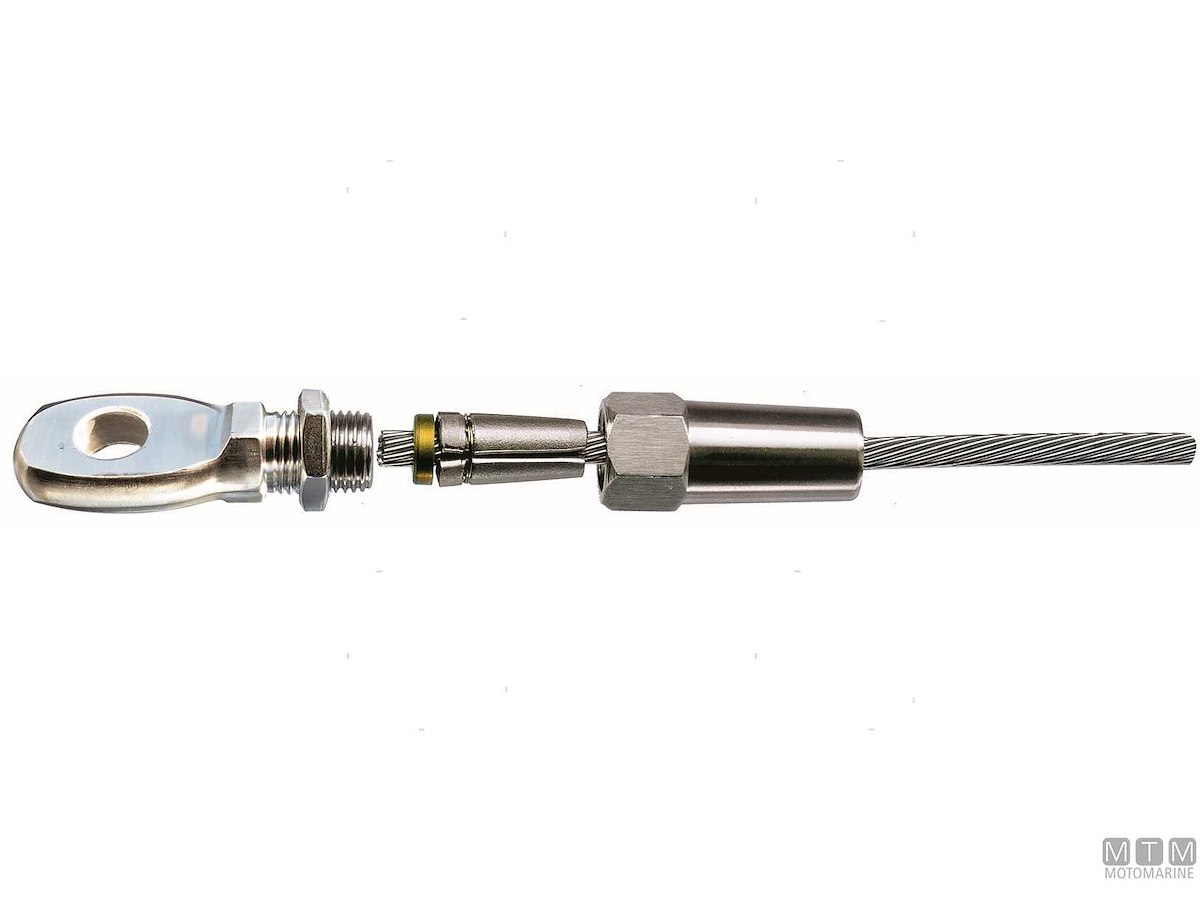 Terminali rapidi in Acciaio Inox AISI 316 con occhio.Tenuta eccezionale pari al carico di rottura del cavo.Facili da montare, basta inserire il cavo d'acciaio nel terminale e il mandrino lo cattura automaticamente. Adatti per tutti i tipi di cavi in acciaio (19/49/133 fili).