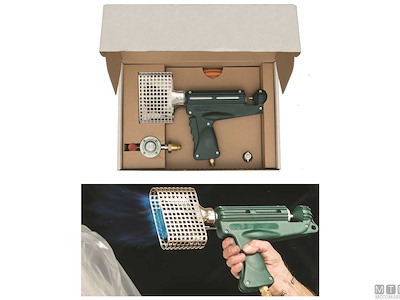 Termopistola a gas propano per la termoretrazione dei teli di copertura in Polietilene. Robusta, leggera e maneggevole, pesa solo 1 kg. Bassi consumi e grande resa con una potenza continua di 32 kW/h effettivi. Accensione piezo con dispositivo di sicurezza integrato, una volta rilasciato il grilletto si spegne automaticamente.Completa di regolatore di pressione e 8m di tubo in gomma. Certificato CE EN 746 Standard, 1 anno di garanzia.