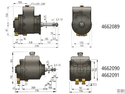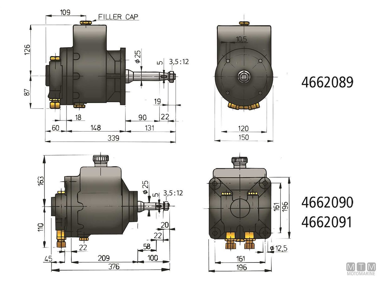 Cod.: 4662090 Ref: Pompa MTP151 cm3: 151 Momento torcente max - Giri volante: Giri volante 3.3(MT230) / 5.0(MT345) / 6.6(MT455) / 8.8(MT600)