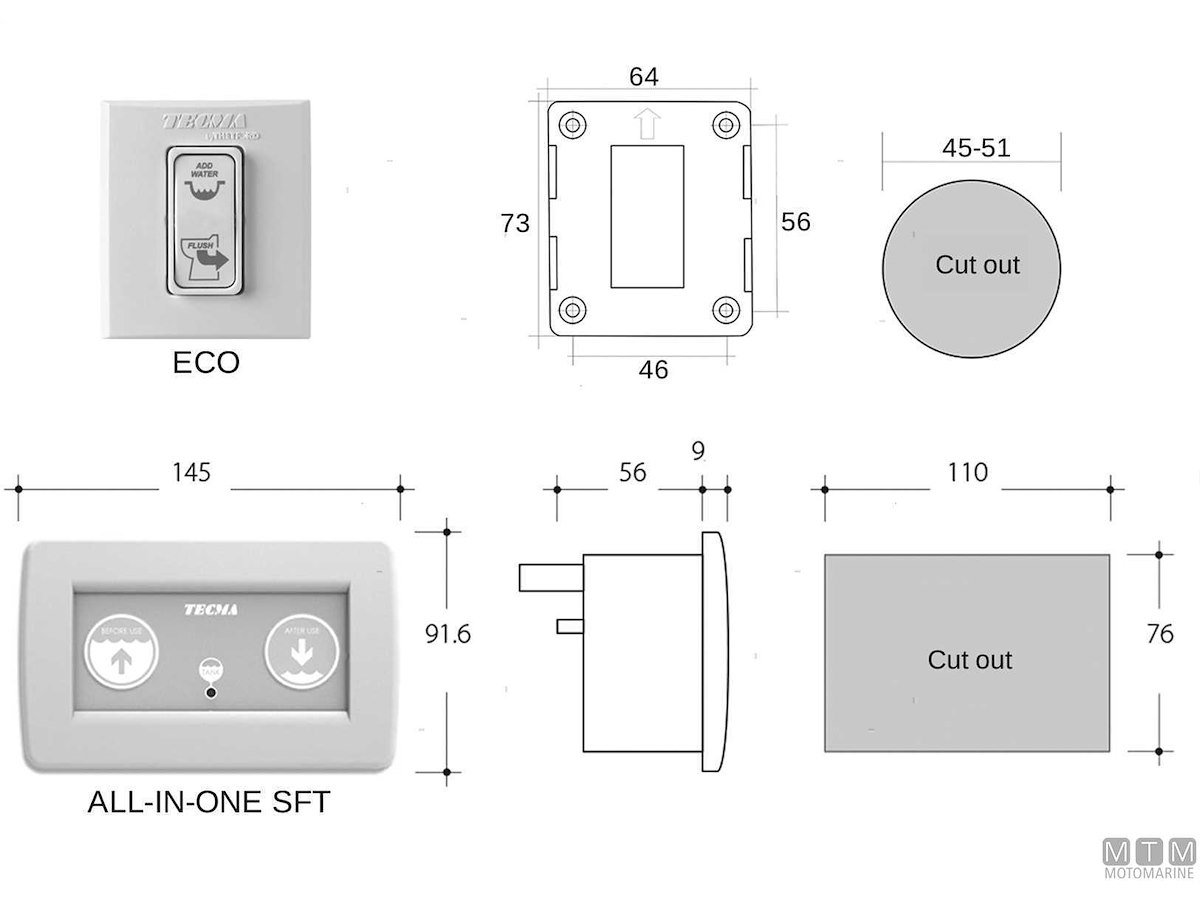 Toilet Tecma Nano compatta con seduta in Termoindurente che combina il comfort con le più piccole dimensioni senza rinunciare alle prestazioni. Dotata di potente pompa maceratrice, consumi limitati di acqua e corrente ed emissioni acustiche ridotte. L’installazione, il cablaggio e le connessioni sono veloci e intuitive, non è richiesta alcuna manutenzione. Disponibile con due pannelli di controllo:  Pannello Eco: pannello con pulsante di attivazione carico/scarico.  Pannello All-in-One SFT: pannello a due pulsanti carico/scarico con tecnologia Smart Flush che riduce consumi e rumore. Completo di spia monitoraggio serbatoio acque nere e funzione di protezione fuoriuscita acqua di carico.