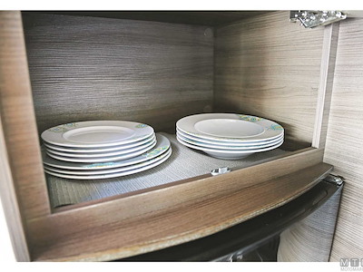 Tovagliette antiscivolo che permettono di fare colazione, pranzo e cena senza preoccuparsi del mare mosso o delle onde causate dal transito di altre imbarcazioni. I piatti, le posate ed i bicchieri rimangono fermi senza muoversi o scivolare, anche se la superficie d'appoggio risultasse inclinata. Si possono utilizzare anche come base d'appoggio per portatili, per elettrodomestici ed altro ancora. La tovaglietta in rotolo può essere tagliata e modellata a seconda della grandezza desiderata. Lavabile a 30°C.