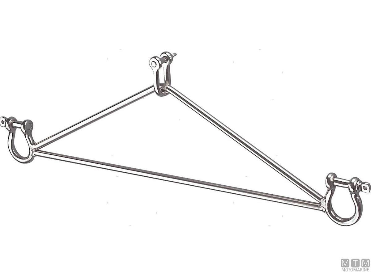 Triangolo sostegno passerella in Acciaio Inox con 3 grilli. Si lega alla passerella ed allo strallo di poppa o alla drizza.
