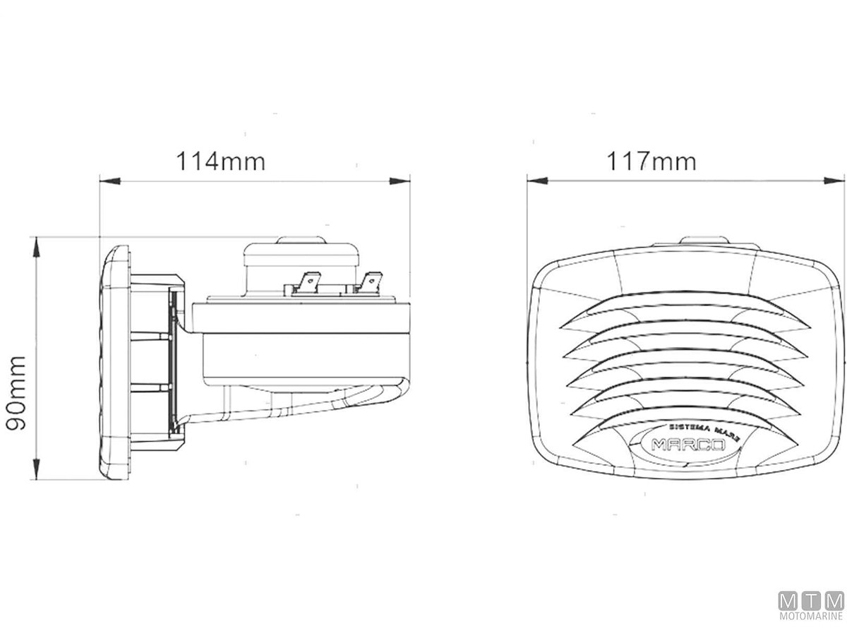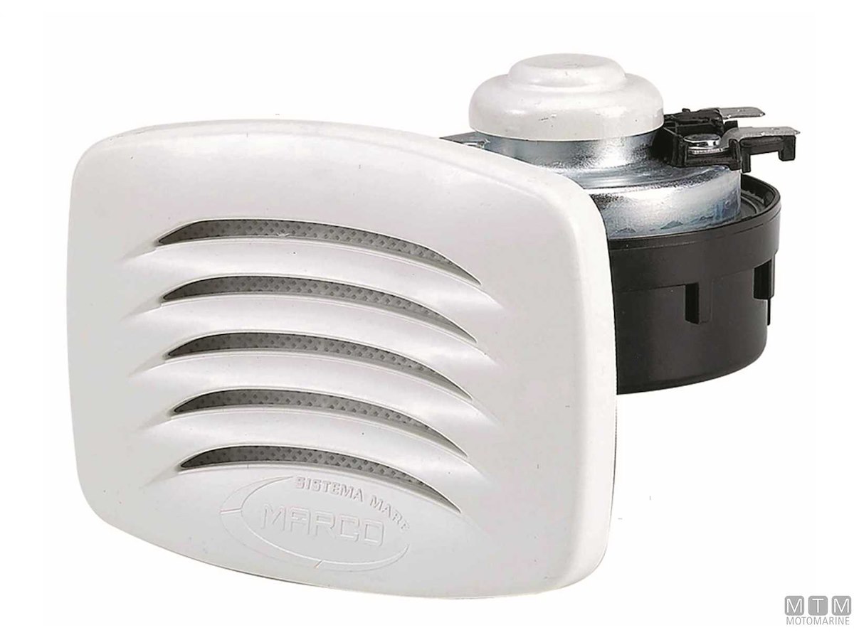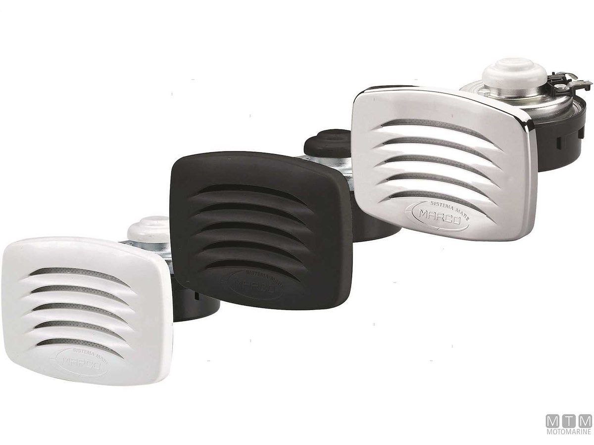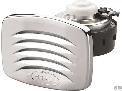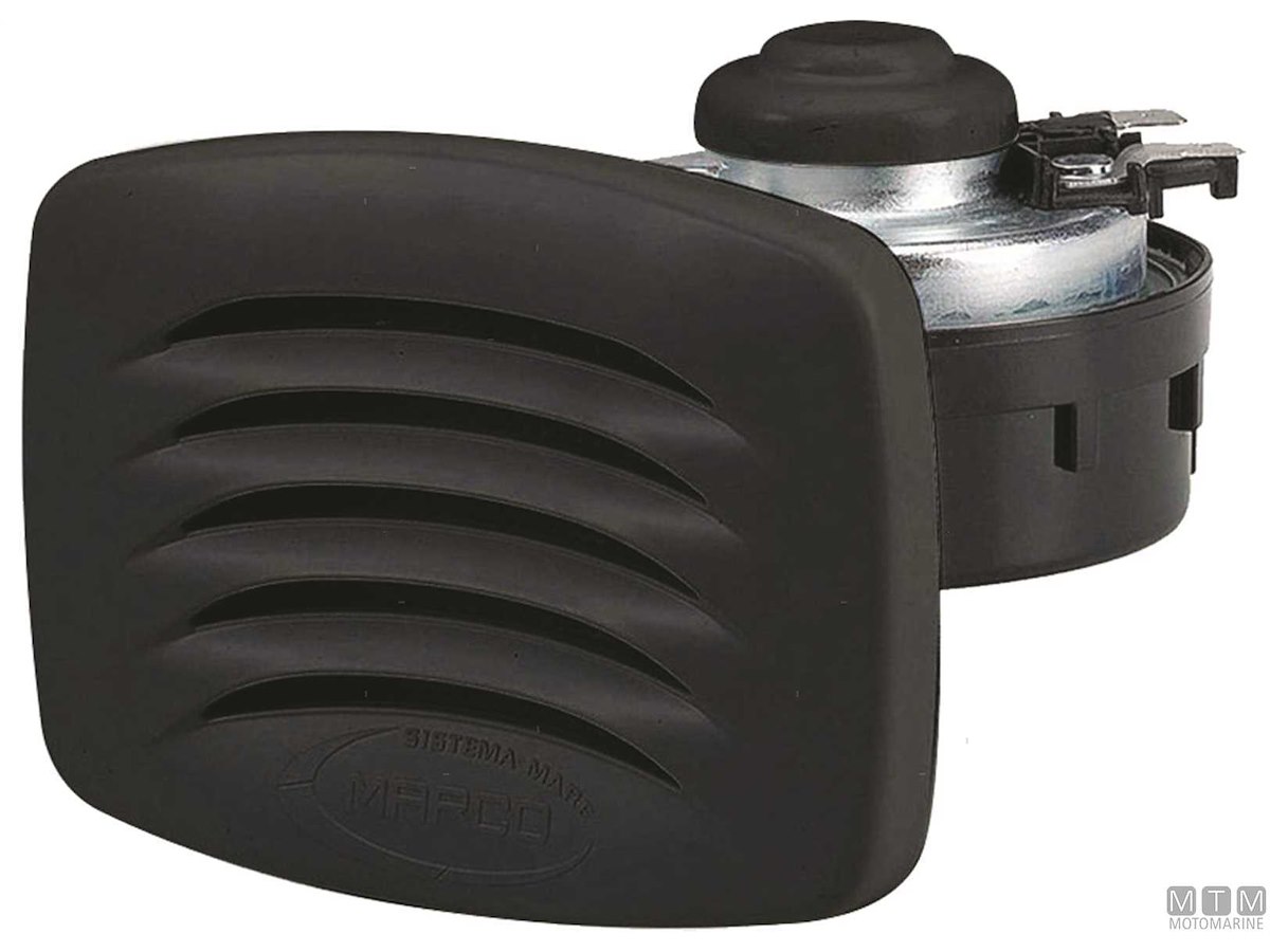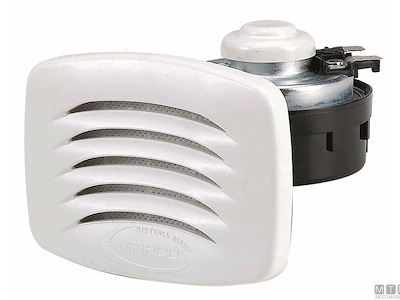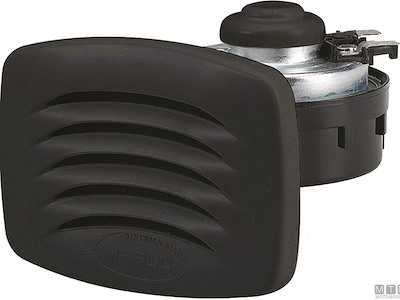 Tromba elettrica 12V/5A compatta con cornice quadrata in ABS e montaggio ad incasso.