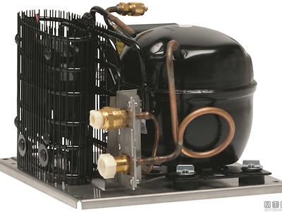 Unità refrigerante molto silenziosa dotata di regolazione della potenza, refrigerante pre-caricato e accoppiamenti a valvola auto-sigillanti per un facile montaggio. Piastra di montaggio in Acciaio Inox anti-corrosione per una lunga durata. Per gruppi frigo composti da: