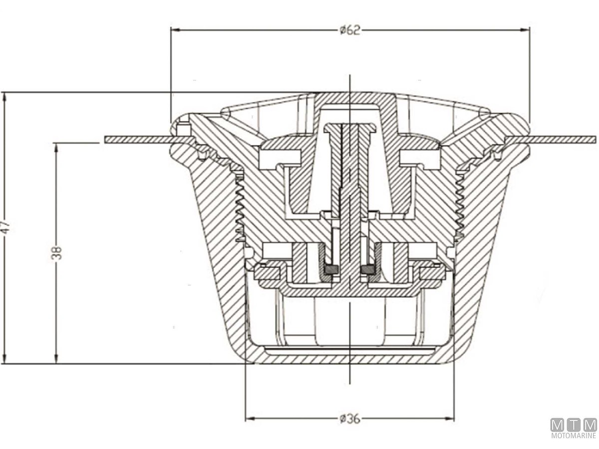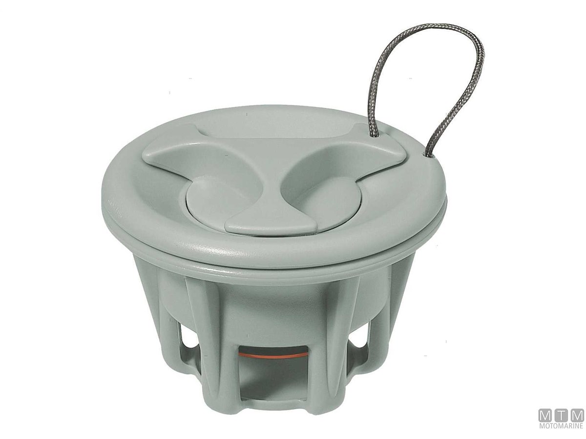 Valvola compatta con tappo ergonomico per gonfiabili ad alta e bassa pressione. Con apertura push e guarnizione a labbro in silicone a massima tenuta.