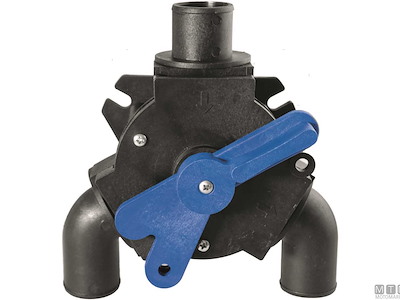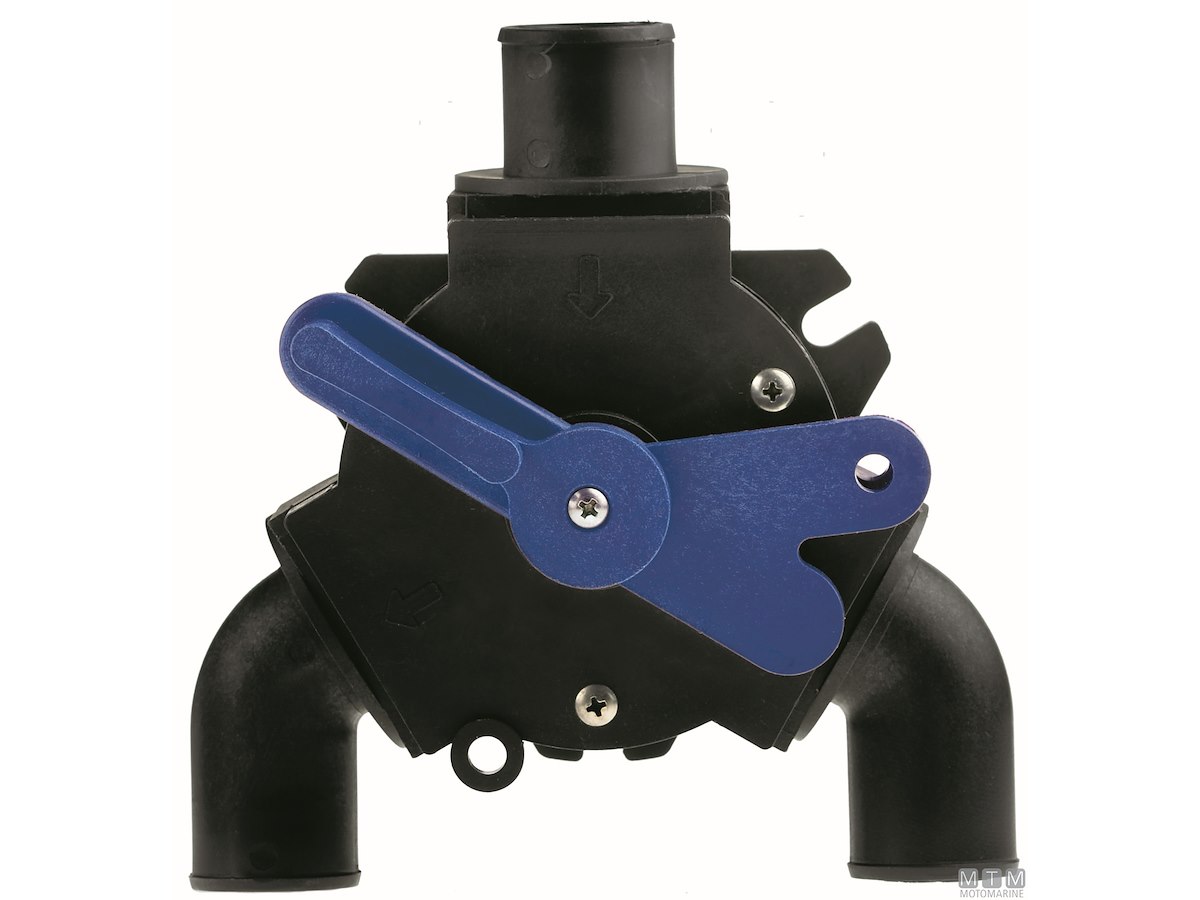 Valvola di scarico a 3 vie con possibilità di comando a distanza con cavo. Permette lo scarico del WC in mare o nel serbatoio acque nere.