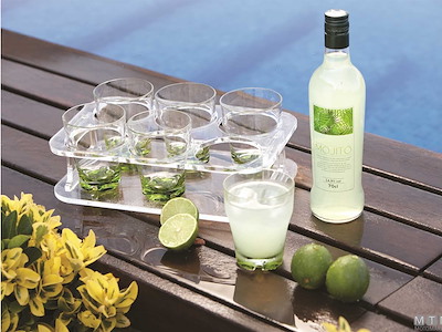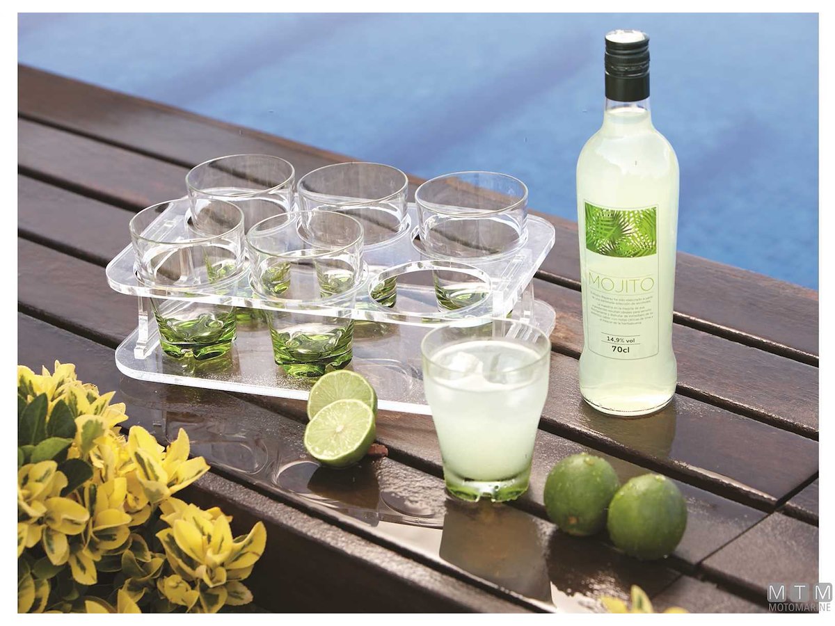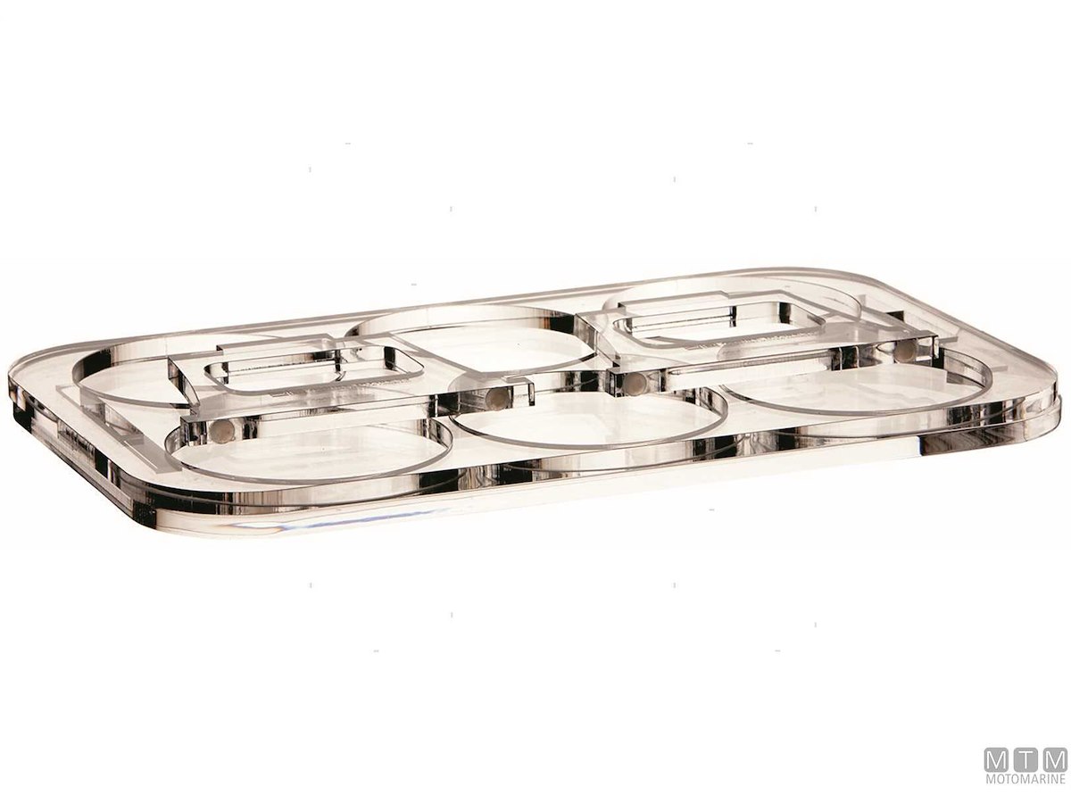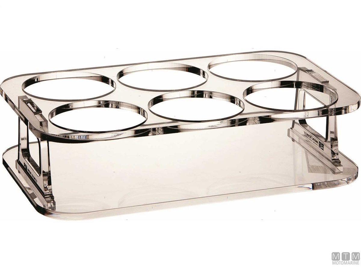 Vassoio portabicchieri con rastrelliera removibile. In Acrilico garantito 100% per uso alimentare. Lavabile in lavastoviglie, infrangibile e anti-macchia.
